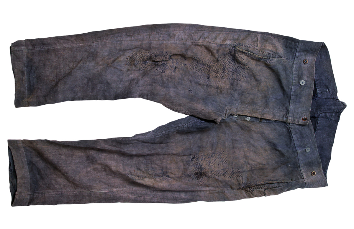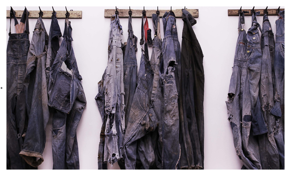 Pantaloni e salopette da lavoro in denim anni 30. Parte del loro fascino è dato dai segni rivelatori della mansione svolta