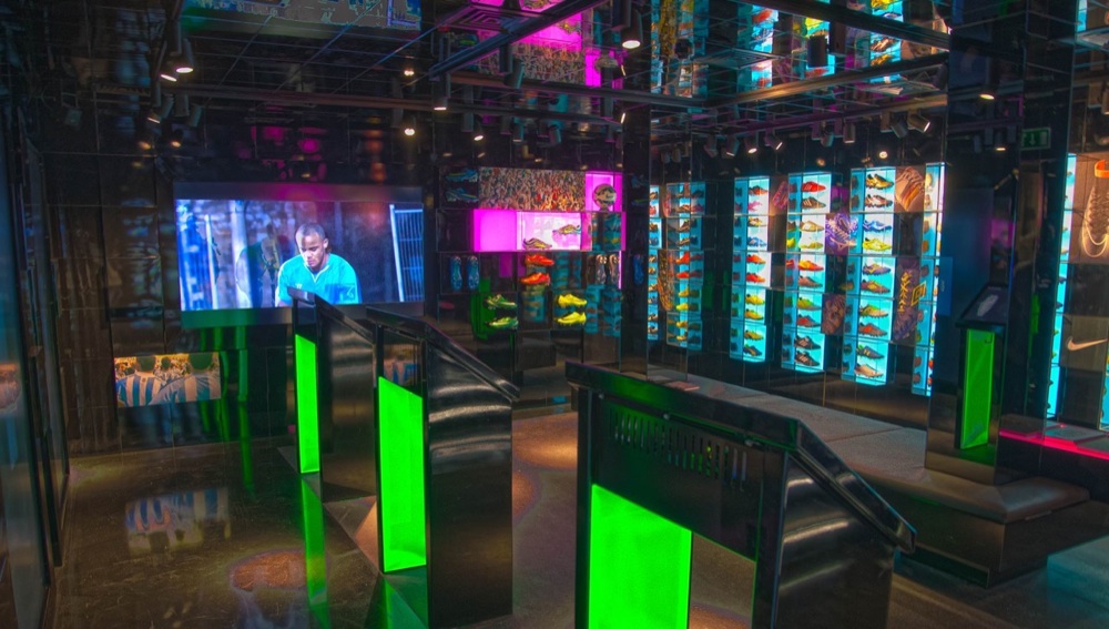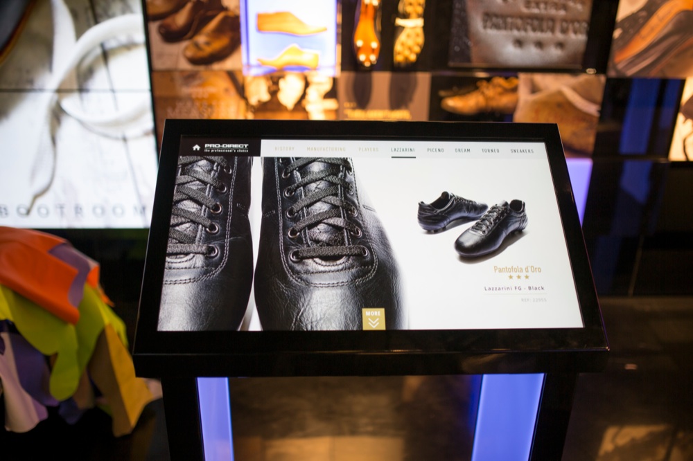 Schermi piatti ultra HD, monitor touch su cui sfogliare i lookbook, manichini 3D, cubi fluo che cambiano colore e l’esperienza di uno shopping virtuale. Al numero 19 di Foubert’s Place, nel cuore di Carnaby Street a Londra, nasce il primo interactive store dedicato agli sport addicted. Il primo punto vendita di Pro Direct Soccer, il più grande negozio on line di abbigliamento e calzature sportive.