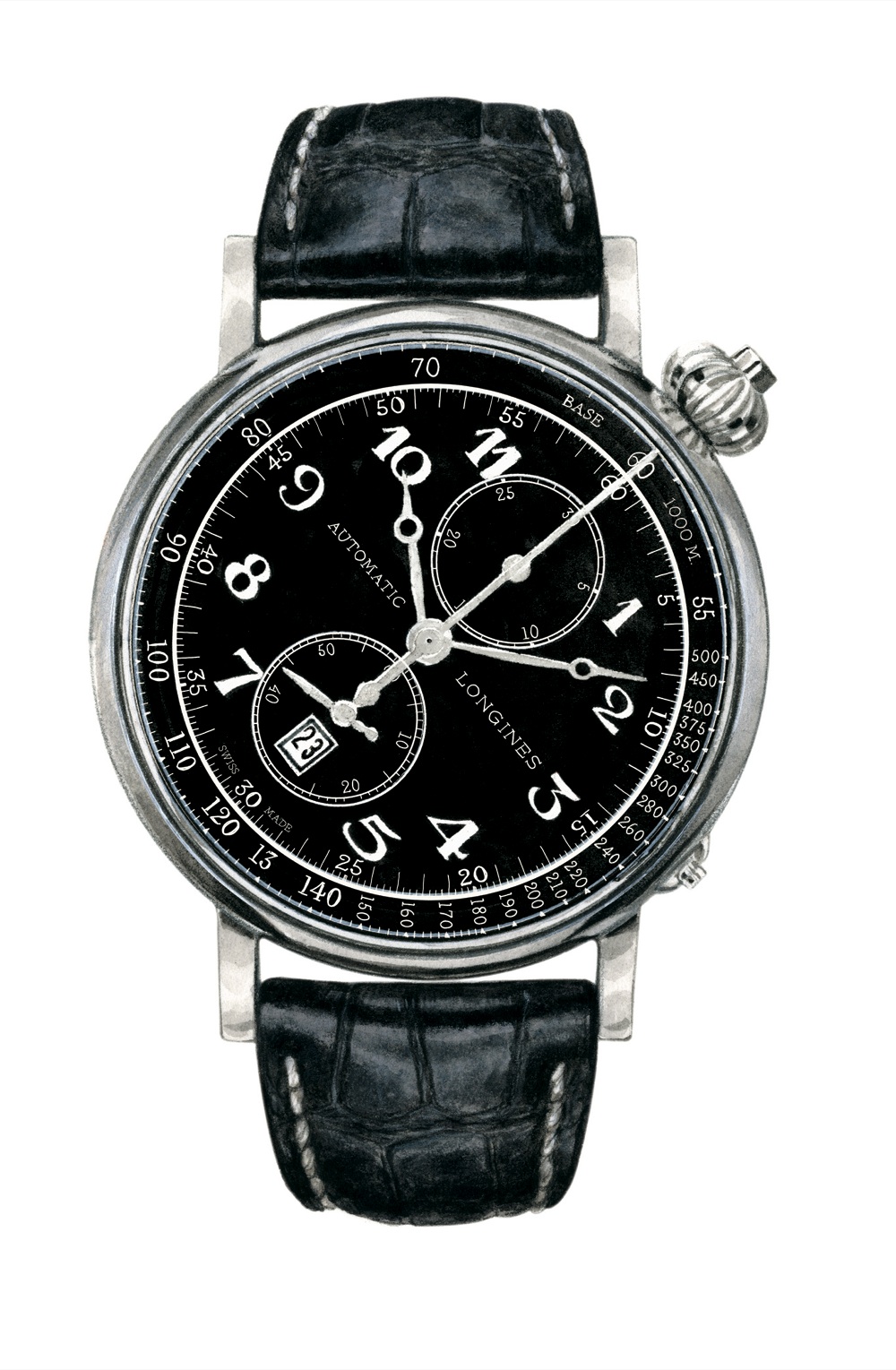 Una riedizione fedele, anzi fedelissima è quella della Longines con l’Avigation Watch Type A-7, un cronografo in stile anni Trenta, periodo di grandi imprese aviatorie sulla scia di Charles Lindbergh (autore della prima traversata aerea dell’Oceano Atlantico). Non a caso molti di quei piloti avevano al polso proprio un orologio della maison svizzera, che da anni sviluppava modelli con le specifiche richieste dai “temerari delle macchine volanti”. Il cronografo d’epoca illustrato nacque nel 1938 su richiesta delle forze armate statunitensi, aveva la cassa in ottone cromato e un movimento, a carica manuale di manifattura, in grado di misurare il 5° di secondo. Con un diametro di 49 mm, era caratterizzato dall’unico pulsante cronografico inserito nella corona a “cipolla” e dal quadrante con i numeri sfalsati. Questo per una lettura agevolata, visto che i piloti portavano l’orologio nella parte interna del polso. A parte il movimento, ora automatico, l’e- stetica del nuovo Avigation è rimasta praticamente identica a quella dell’antenato, a partire dal pulsante nella corona e dal quadrante sfalsato con scala tachimetrica. Uguali anche il diametro, la grafica dei numeri e le lancette. In più vi è la finestrella del datario, mentre la cassa, in acciaio inox, è a cerniera. Il modello, sicuramente una delle interpretazioni vintage più riuscite, è destinato a diventare un oggetto da collezione. Prezzo indicativo: 3.400 euro.