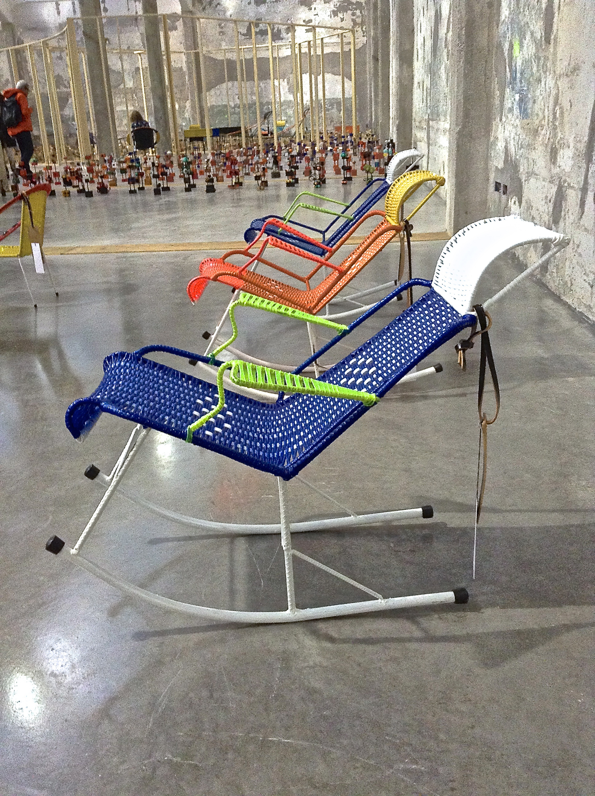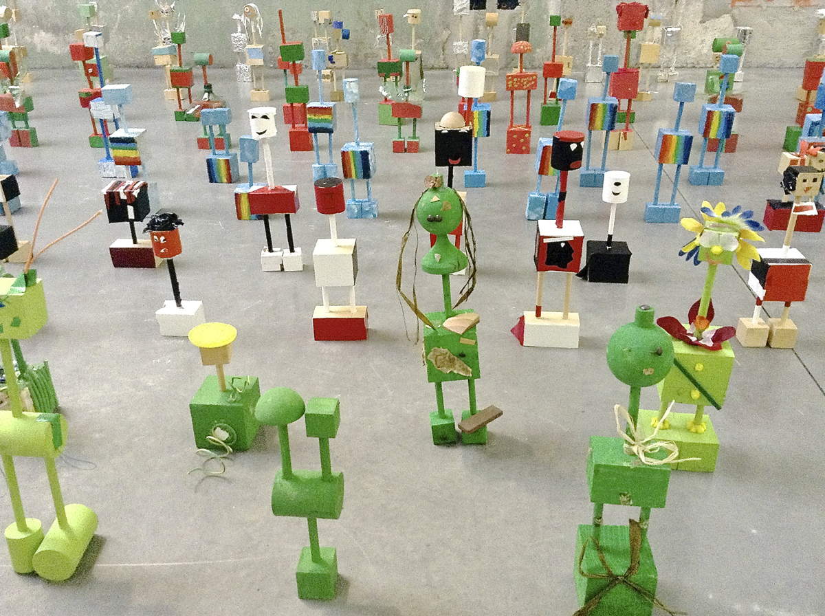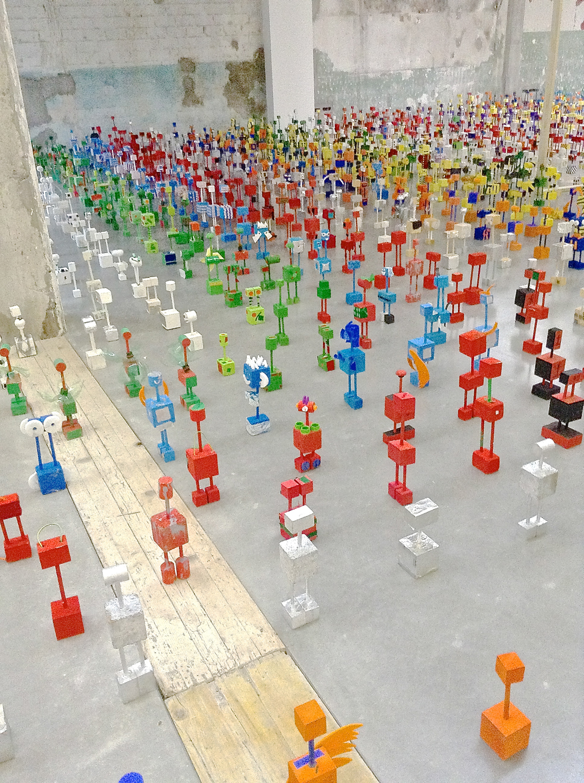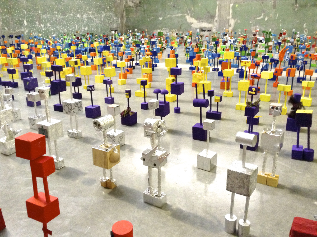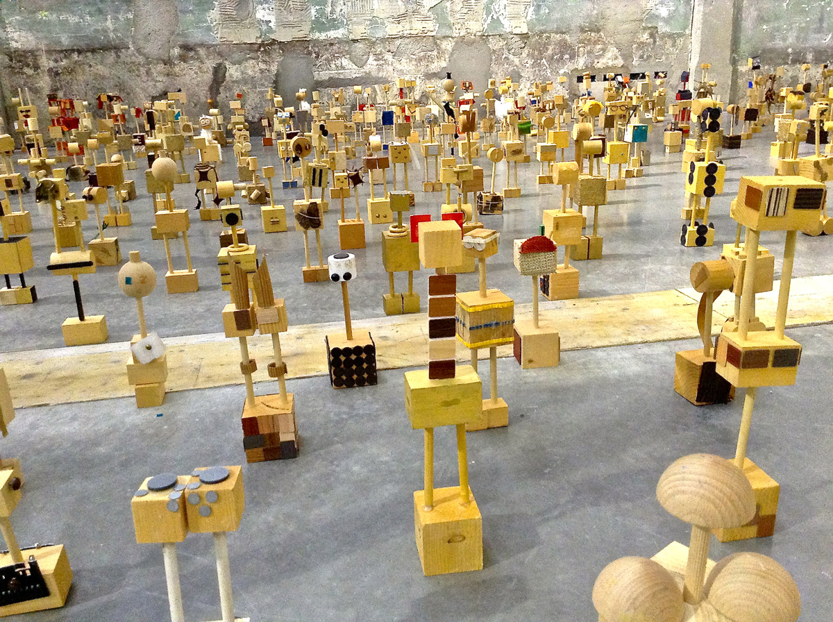 Sono 6 mila, si chiamano Abi-tanti e in occasione della Milano Design Week hanno pacificamente invaso il nuovo spazio Marni di Viale Umbria 42. La “Moltitudine migrante” è composta da omini robot creati assemblando singoli elementi base in legno, una sorta di DNA primitivo, e rivestiti utilizzando centinaia di materiali, tessuti multicolor, elementi bijoux in metallo, plastica o acetato di scarto delle collezioni Marni. Il progetto del Dipartimento educazione Castello di Rivoli Museo d’Arte contemporanea è un work in progress itinerante: gli omini nomadi si sposteranno a Parigi durante la Mostra di Michelangelo Pistoletto- Année un. Le paradis sur terre che inaugurerà il 24 aprile al Museo del Louvre e l’8 e il 9 giugno invaderanno i Giardini della Tuileries, insieme ai nuovi Abi-tanti che il 13 e il 14 aprile si potranno creare durante il workshop nello spazio Marni. Nella stessa location di Viale Umbria, circondate da centinaia di piccoli robot, ci sono sedie, chaise-longue, tavoli, sedie a dondolo e seggioline per bambini dell’edizione 2013 del progetto “Marni, 100 chairs”, costruite a mano da un gruppo di ex detenuti in Colombia. Il ricavato della vendita dei salottini verrà devoluto in beneficenza.