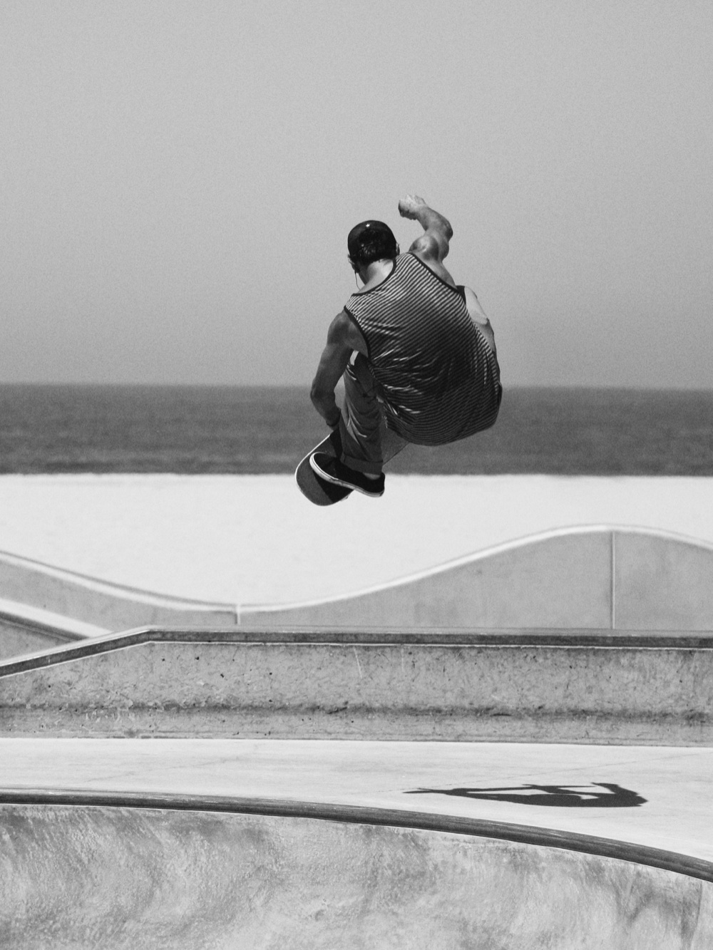 Sembra quasi di sentirne il rumore. Un respiro profondo prima di prendere velocità. Lo scricchiolìo dei truck inchiodati alla tavola di legno. Il fruscìo secco delle ruote che schizzano sul cemento bollente in quell’attimo prima di staccarsi da terra. I corpi si muovono in volo, come angeli rimangono per un attimo sospesi, impegnati in una lotta eterna: quella contro la gravità.