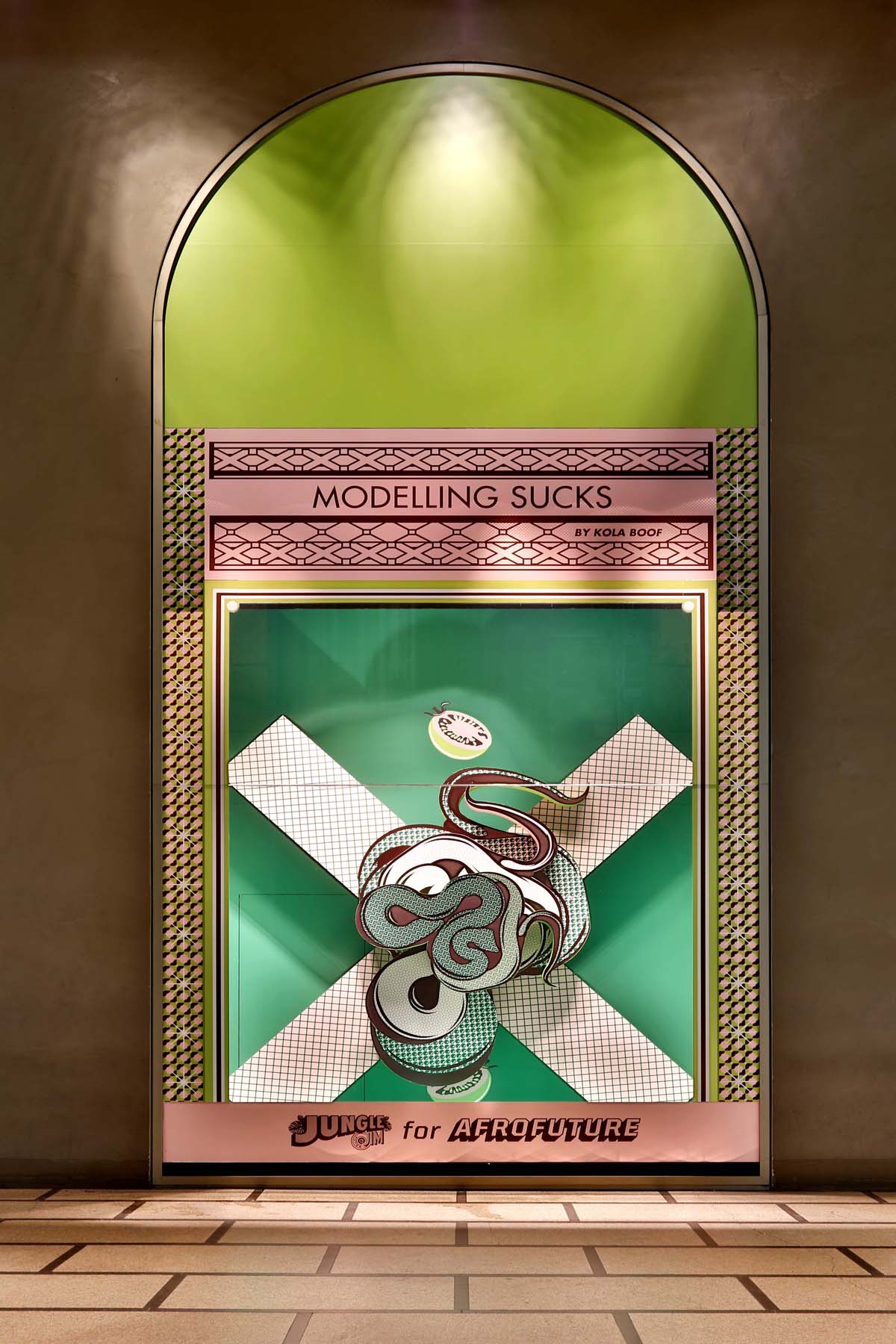 Durante la settimana della Milano Design Week anche la Rinascente partecipa al Fuorisalone presentando le sue storiche vetrine di via Santa Redegonda (che si affacciano sul Duomo) in una veste insolita: con le creazioni dell’illustratrice londinese Emily Forgot, che racconta sei storie tratte dal genere pulp-africano scritte dai maestri del genere e raccolte nella rivista a fumetti Jungle Jim.