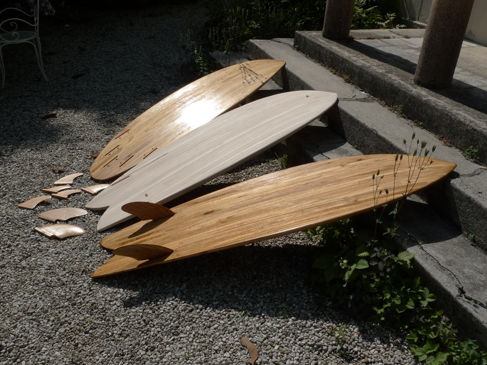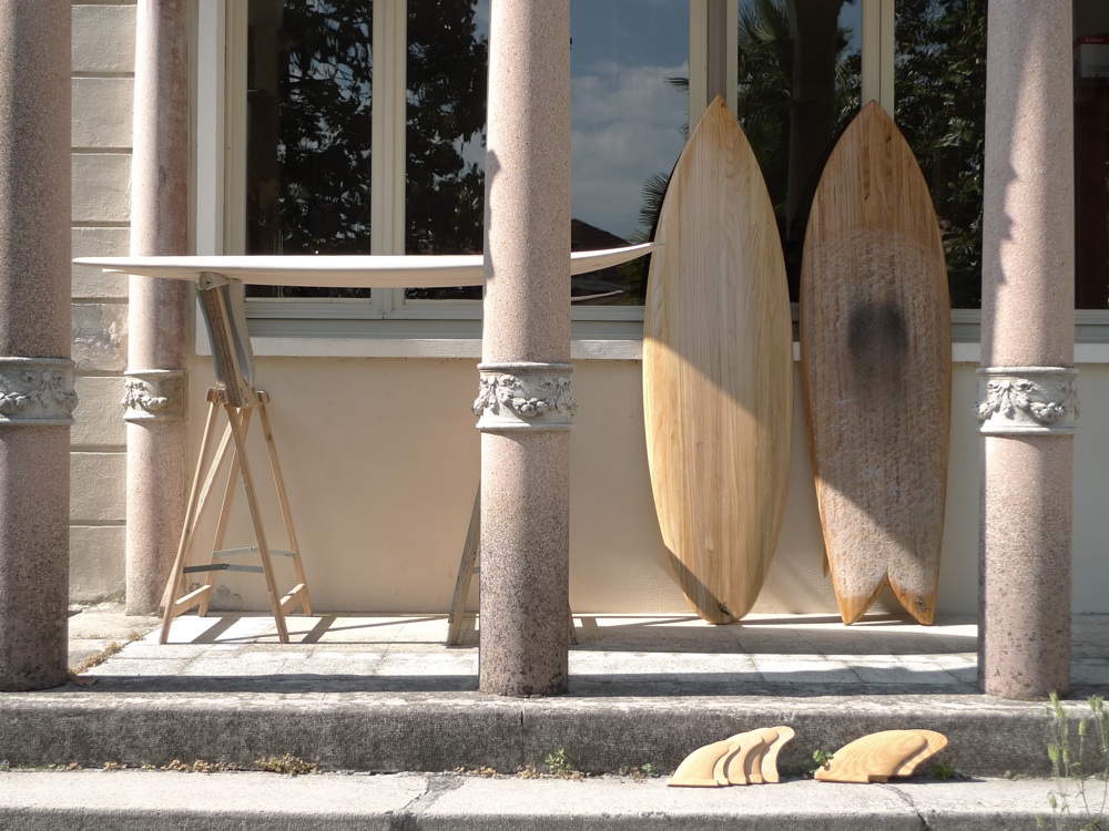 Le tavole di SoloSurfboard sono realizzate in legno di Paulonia, ‘economico, di origine orientale ma diffusissimo in Italia, con una pianta che cresce velocissima incidendo poco sulle risorse da impiegare‘. In commercio, esistono già tavole in legno, ma con una copertura in fibra di vetro, inquinante. ‘Se la respiri, anche in fase di lavorazione, è irritante’, continua. ‘E io soffro di asma’. La finitura esterna è in olio di lino e, assicura Bressan, ‘più passa il tempo, più le mie tavole acquistano fascino vintage’.