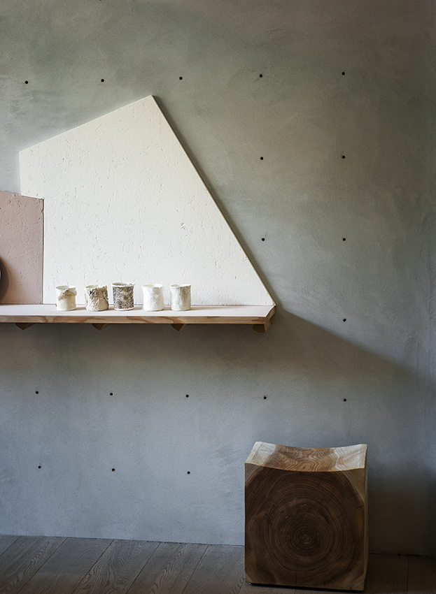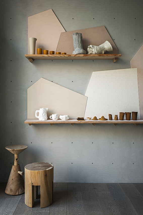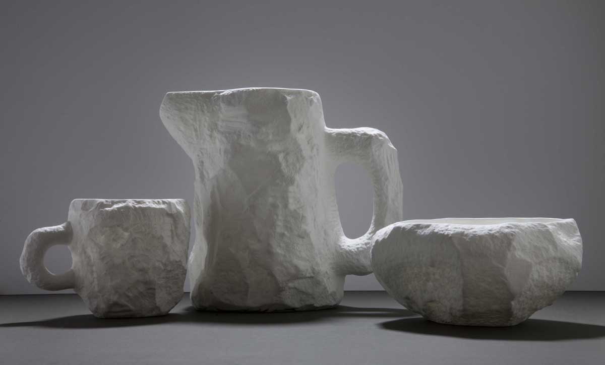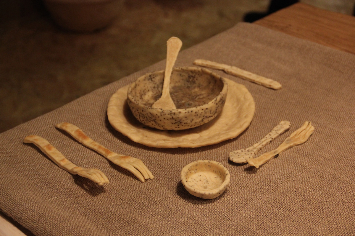 “Baked Tableware” di Andere Monjo (UK): acuqa e farina sono i materiali usati per questa installazione, i cui componenti sono stati fatti asciugare all’aria aperta