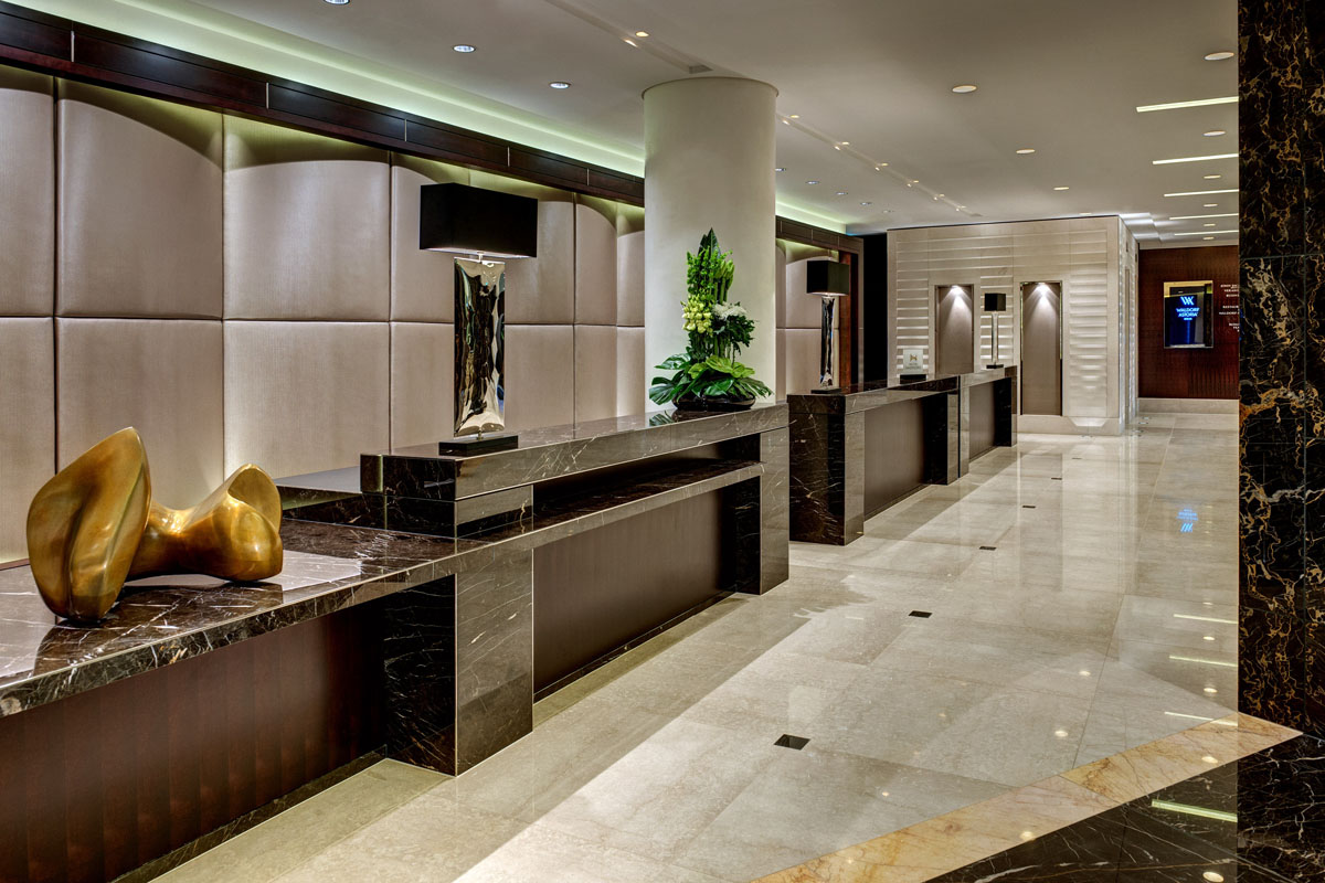 Seduti sui divani della suite presidenziale al 33esimo piano dell’hotel, dalle ampie vetrate si gode di una vista mozzafiato. Dall’altro lato dell’edificio, intanto, procedono i lavori nei cantieri che stanno trasformando questa zona della città nel nuovo polo del lusso.