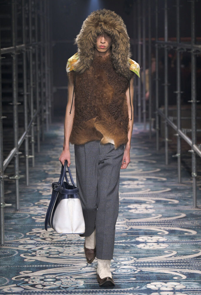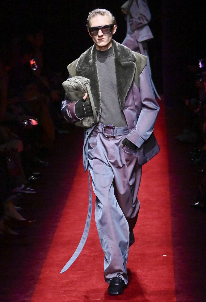 Il completo giacca e pantaloni resta un, forse potremmo dire il, must have per eccellenza. Richiama la tradizione del ben vestire, nonostante Fendi lo rilegga in chiave contemporanea utilizzando tessuti diversi per impreziosire alcuni dettagli del look e svecchiare un indumento che fa in fretta a sembrare vintage.