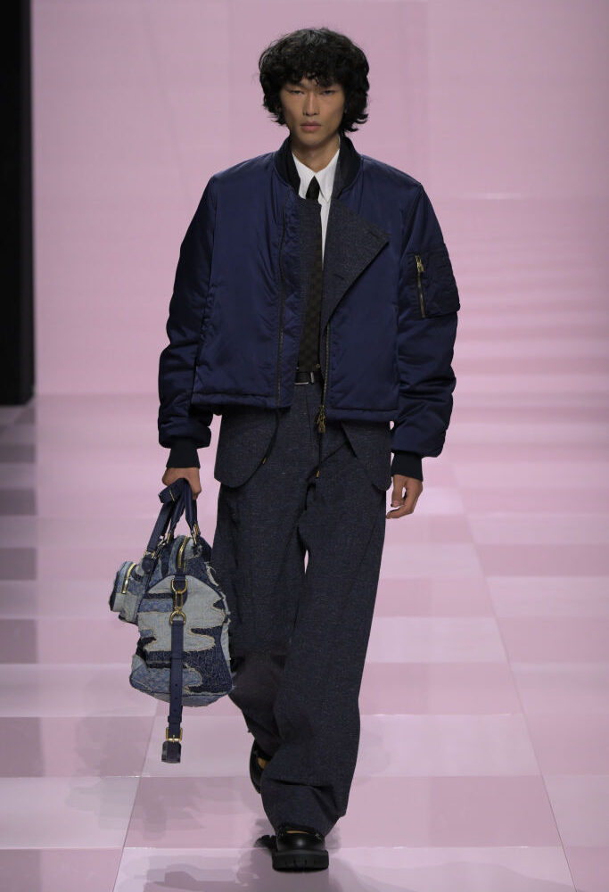 Sempre di contrasti si parla osservando i bomber firmati Louis Vuitton by Pharrell Williams, da indossare sopra i completi eleganti per enfatizzare le differenze tra uno stile e l’altro. Dopo anni di assenza dalle passerelle, è tornato ad affascinare il menswear, complice la sua comodità e trasversalità.