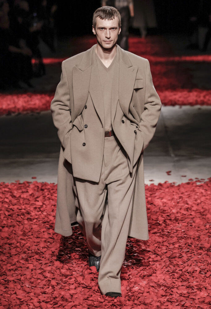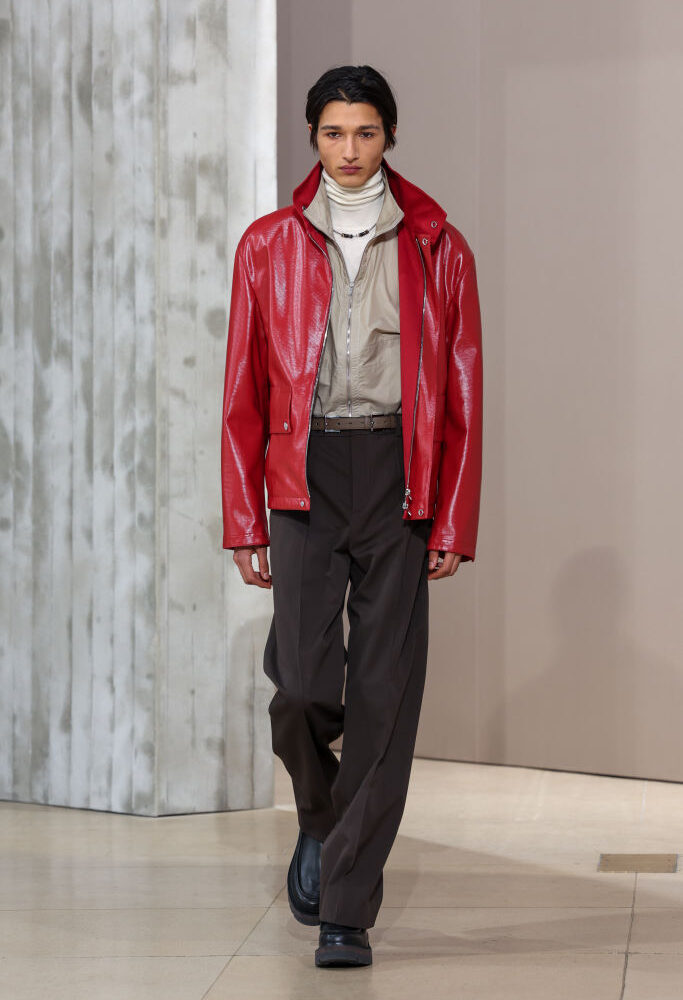 La passione per la stratificazione continua con Hermès, che sovrappone giacche, camicia e pantaloni creando mix inediti per affrontare il freddo dell’autunno inverno 2025/26. A valere più di tutto sono i materiali che assumono il ruolo di protagonisti, specialmente se utilizzati in contrasto gli uni con gli altri.