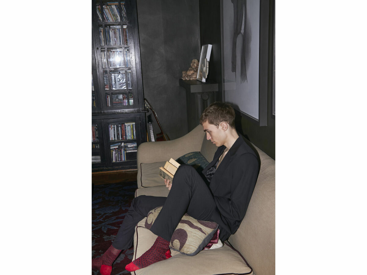 Da più di dieci anni Dino Longo Sabanovic è un accumulatore seriale di capi vintage, ma soprattutto è sempre stato affascinato dagli occhiali: «Ho iniziato a girare i negozi di ottica di mezza Italia alla ricerca di occhiali vintage e sono arrivato a raccoglierne quasi 12 mila. Un accessorio dalla doppia anima, che protegge, ti maschera ma al tempo stesso ti permette di vedere», ci racconta. «Un giorno, però, ho deciso di girare il mio primo lungometraggio e ho venduto la mia intera collezione per investire nell’attrezzatura del film. Lì ho capito qual era la mia strada, per questo gli occhiali sono un prodotto a cui sono molto legato e che ritroviamo anche nell’ultimo cortometraggio che ho realizzato insieme ad Icon, Talk to me Bill. Occhiali leggeri, montatura nera da intellettuale, sono quelli inconfondibili e iconici di Bill Evans, uno dei più grandi pianisti di tutti i tempi».
