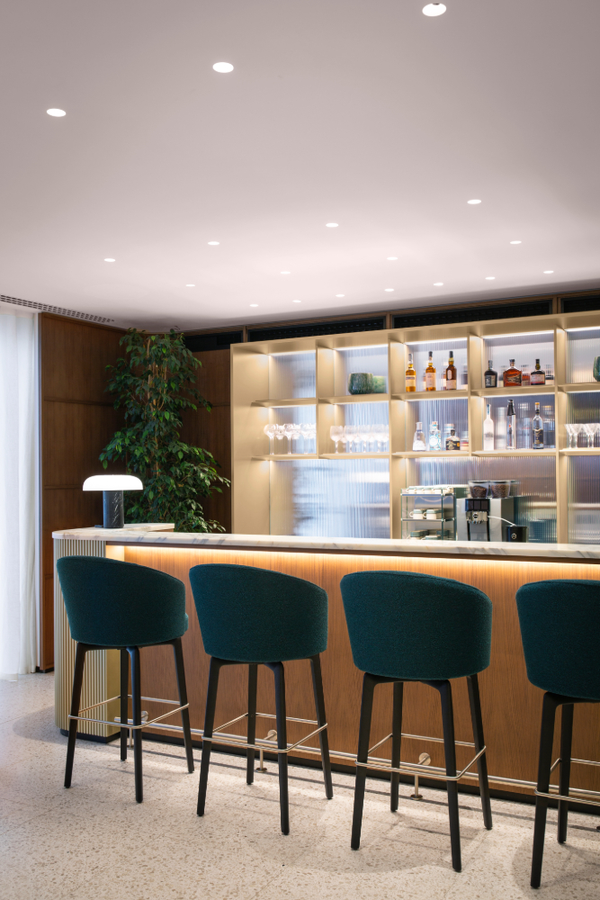 La boutique è un palcoscenico in cui pubblico e privato si fondono armoniosamente: le vetrine offrono una vista senza ostacoli sulle collezioni Canali, mentre gli spazi interni, più riservati, raccontano di una Milano che custodisce i suoi tesori più preziosi nei cortili nascosti. La Canali Lounge, cuore della boutique, richiama l’eleganza delle residenze milanesi, un’oasi di lusso e italianità dove il tempo sembra rallentare, abbastanza per concedersi il piacere di degustare un caffè o un aperitivo al grande bancone del bar. Questo spazio, nato dalla visione condivisa con gli architetti di Park Associati, è più di uno store: è un manifesto di stile, un ponte tra la sartorialità, il design e l’innovazione che rende ogni dettaglio una scoperta.