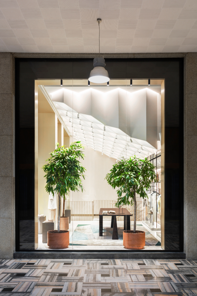 Con i suoi 500 metri quadrati distribuiti su due livelli, lo spazio non è solo un punto vendita, ma un viaggio nel mondo Canali, attraverso il tempo e lo stile, dove il moderno dialoga con la tradizione. Un gioco di contrasti caratterizzati da diversi arredi. L’uso di superfici curve e raggiate si alterna a forme leggere e squadrate. Le pareti di legno, impunturate da un motivo metallico applicato a mano che ricorda le precise cuciture sartoriali, narrano di artigianalità e precisione.