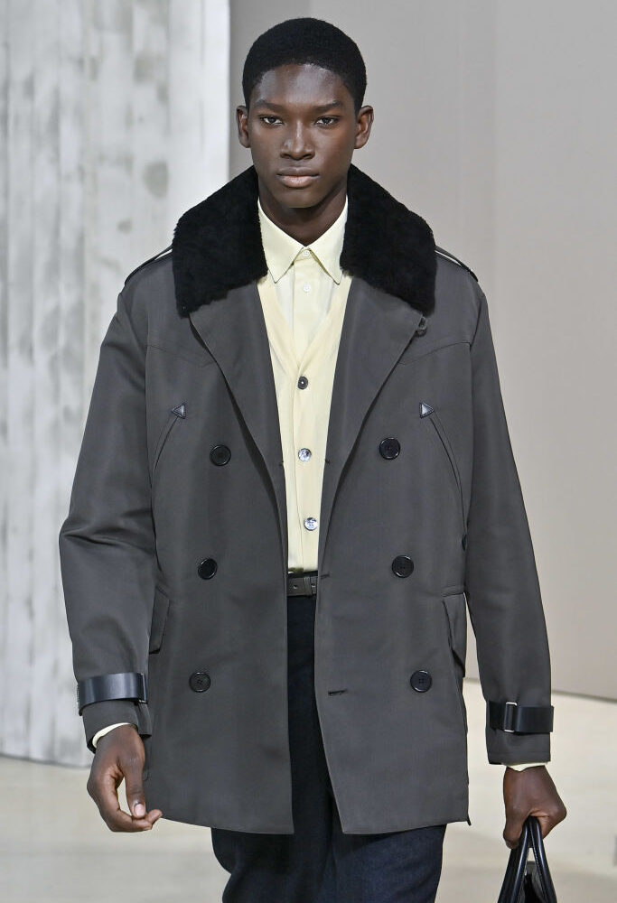 Viva gli ibridi, tipo il cappottino-caban effetto shearling di Hermès. Sembra una cosa ma è anche un’altra, e poi un’altra ancora per i dettagli sofisticati. A decretare la sua essenza è l’uomo che la indossa con garbo da mattina a sera, complice la palette sobria e il design lineare. Oggi si punta sulle mezze misure, soprattutto durante le mezze stagioni.