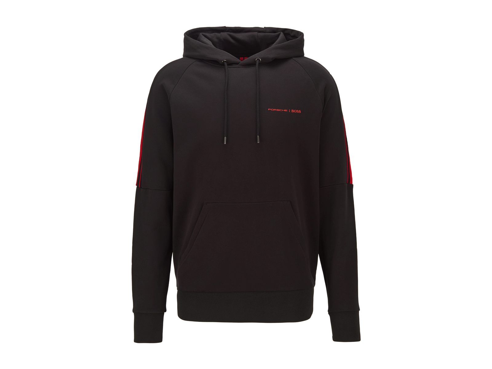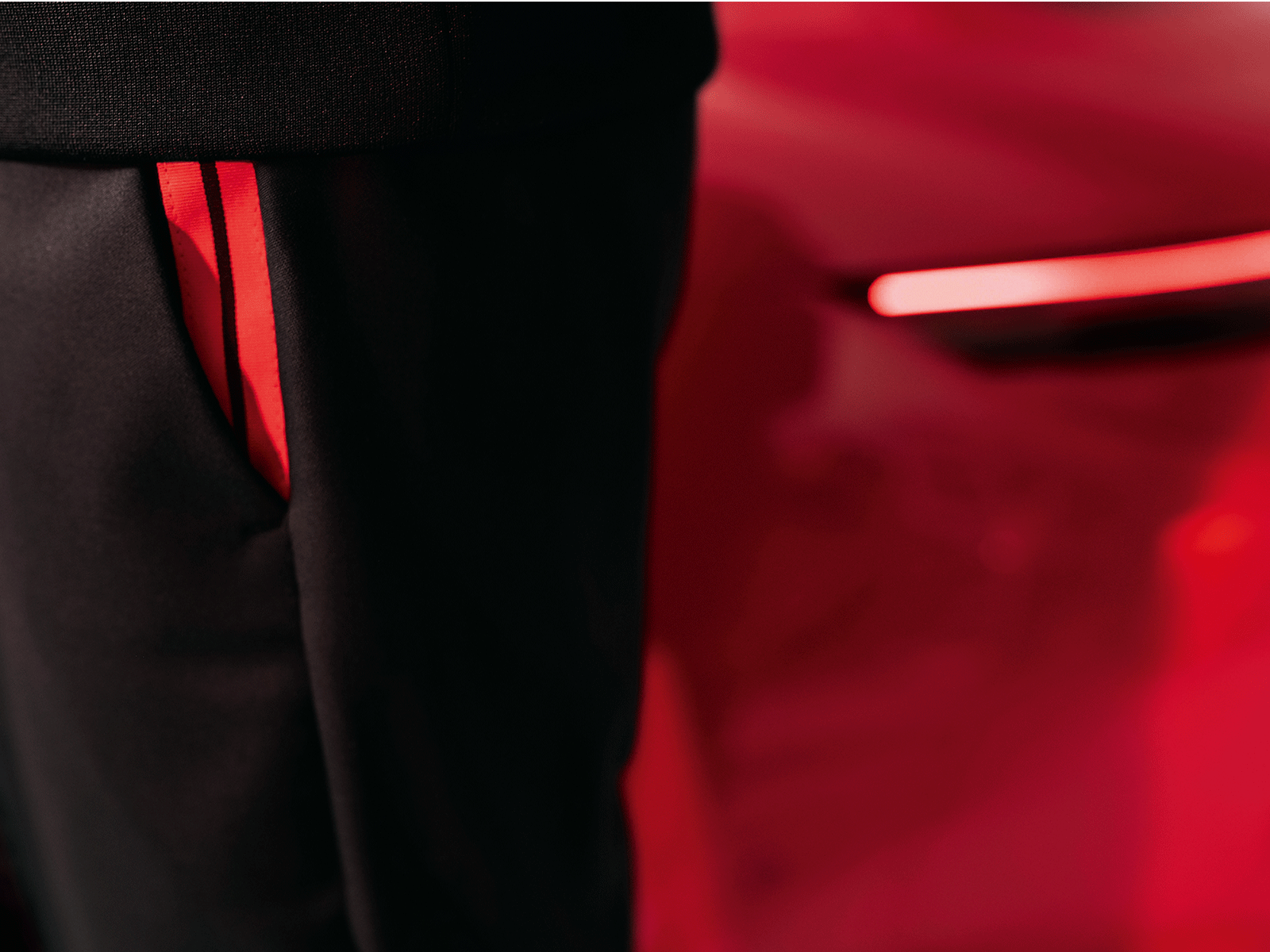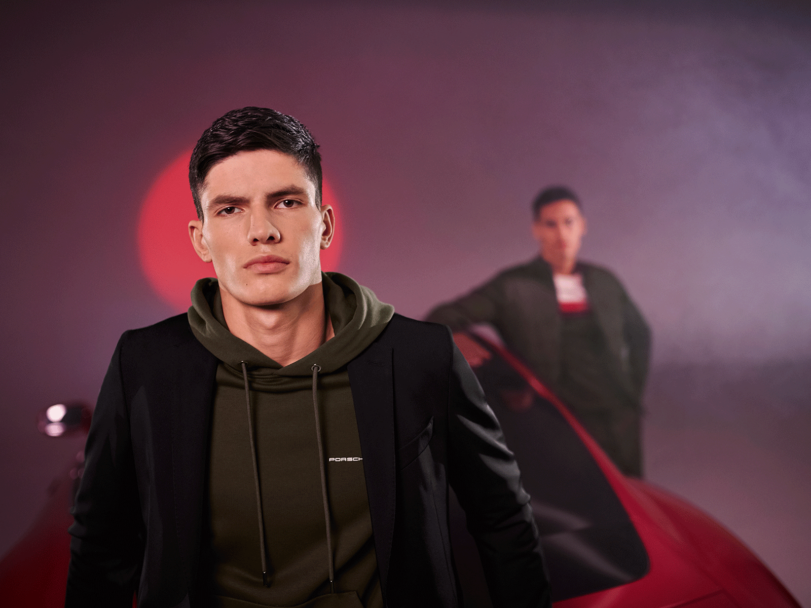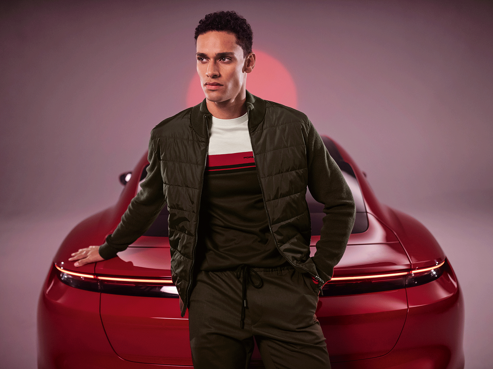 Dalle felpe con cappuccio fino ai capispalla e ai capi in denim e in jersey che si uniscono a modelli sartoriali e in pelle, la nuova collezione spazia nel mondo young, proponendo idee audaci e all’insegna della sportività. I capi più trendy sono quelli più iconici: il giubbotto nero in pelle regular fit con colletto rialzato, la giacca nera opaca che si trasforma in un piumino rosso lucido, il cardigan ibrido con zip integrale e pannello frontale in nylon imbottito, i pantaloni slim fit in tessuto elasticizzato con coulisse in vita, la T-shirt nera o rossa dal taglio perfetto con la stampa che replica le linee frontali di Porsche Taycan e la felpa in cotone terry mercerizzato.