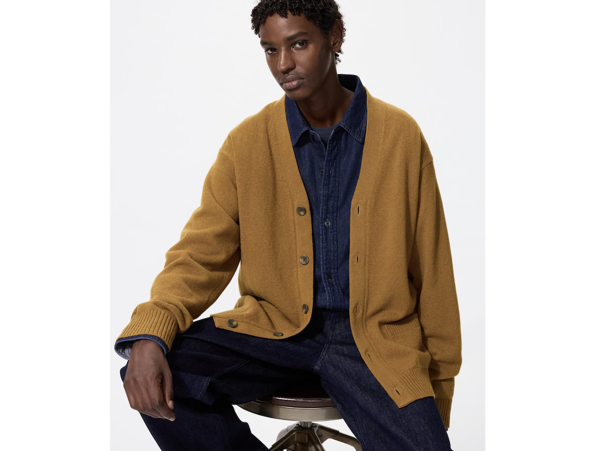 Se il cardigan è davvero tornato centrale, lo si capisce soprattutto quando arriva nella normalità. Ed è qui che entra Uniqlo: versione democratica nel prezzo ma rigorosa nella materia, con lane merino, cotoni compatti e fibre naturali che puntano più alla durata che all’effetto. Le linee sono pulite, moderne, prive di decorazione. Cardigan sottili, regolari, pensati per essere indossati sopra una T-shirt, sotto un cappotto o da soli, sempre senza dominare il look. Pezzi che non cercano protagonismo. Uniqlo traduce il cardigan da oggetto di moda a gesto quotidiano: accessibile, coerente, credibile con qualsiasi stile. La prova definitiva che il suo ritorno non è solo passerella, ma guardaroba reale.