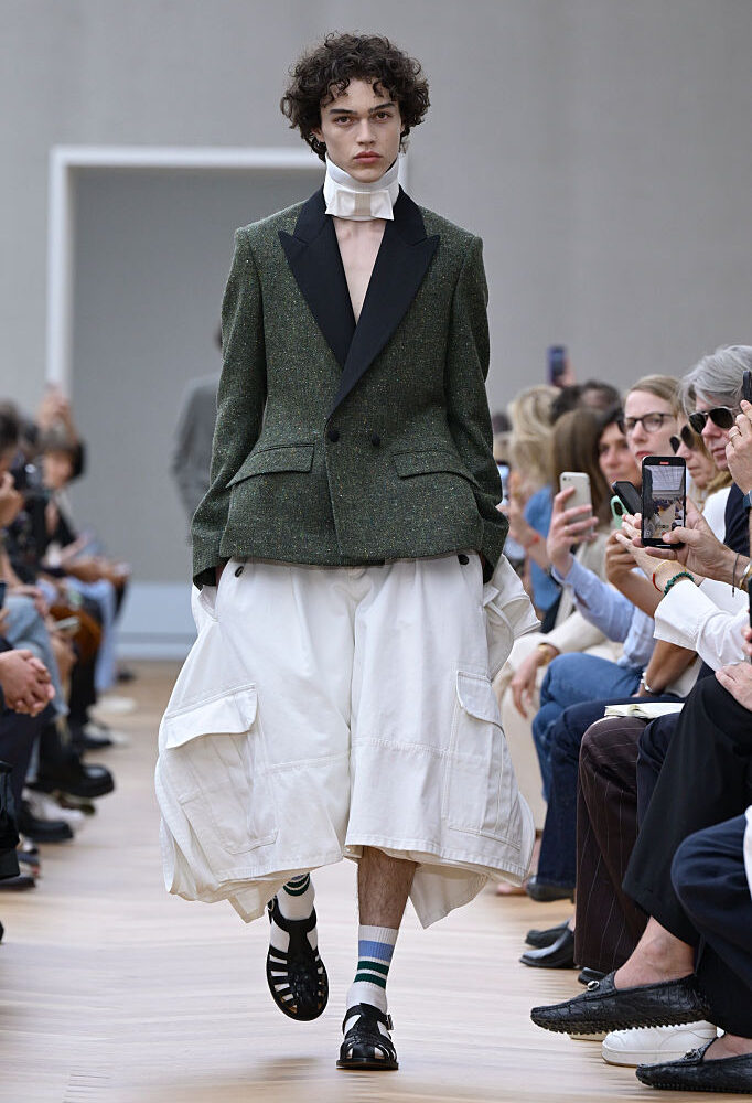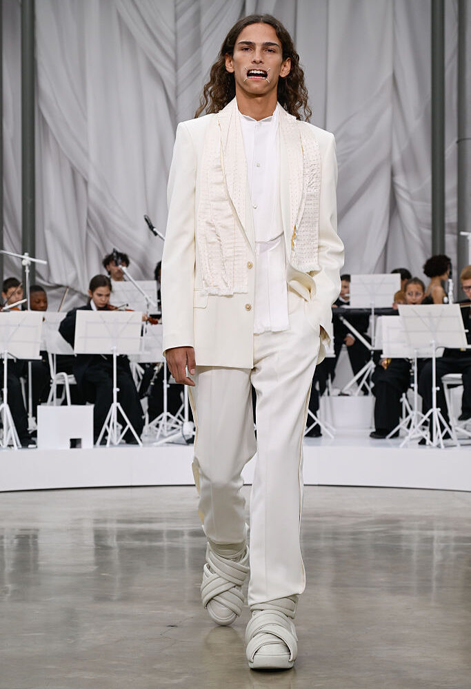 Spazio, poi, alla moda architettonica di Dior by Jonathan Anderson. Anche questo direttore creativo debuttante a capo della Maison ha scelto il Cloud Dance, prima che si conoscesse il suo nome. Ma per la casa di moda francese è tutta una questione di nostalgia, tra colletti resi accessorio (già cult) e pantaloni vagamente simili alle celebri gonne degli abiti firmati Dior nel secolo scorso. Chic all’ennesima potenza.