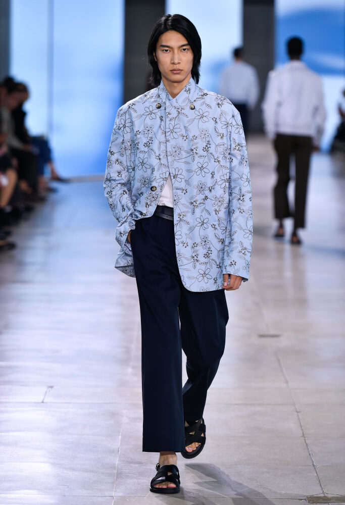 Hermès punta sulla semplicità sdrammatizzata da giacche effetto “wow”, riccamente decorate mentre il resto è minimal. Così, in qualsiasi location, si sarà a proprio agio e vistosi – ma meglio non indossare sandali, piuttosto stringate e mocassini.