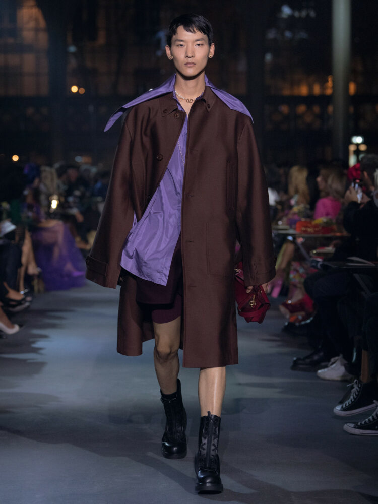Pierpaolo Piccioli cambia le carte in tavola e decide di presentare la sua collezione prêt-à-porter, Valentino Rendez-Vous con un’esperienza coinvolgente. Quindi non solo addetti ai lavori, ma anche il micromondo intorno alla location, il Carreau du Temple nel Marais a Parigi. Oltre allo spazio interno la Maison ha personalizzato i café intorno alla struttura dove ha invitato gli studenti delle scuole ad assistere all’evento, infatti la sfilata si è svolta sia dentro sia fuori. Poi in 4 boutique della zona ha realizzato un takeover non invasivo e logo driven. ‘Elevastor’ ospita il Valentino concept store con una serie di hoodies limited edition tra cui la felpa ‘(V) Vaccinated’ diventata virale. I proventi netti della vendite andranno all’Unicef per supportare il programma globale Covax. ‘2 Rue du Petit Thouars 75003’, invece, promuove la collaborazione con il podcast musicale e culturale ‘Are We On Air’, oltre a un’installazione con l’iconico Valentino Garavani Roman Stud. ‘Rombaut’ accoglie Valentino Garavani Open for Change, le sneakers pensate con un take sostenibile e responsabile. Infine ‘Messieurs Dame’ è l’angolo per il beauty con make-up artists a disposizione di chi volesse consigli (su appuntamento fino alla fine della Paris Fashion Week). In tutto questo ci sono anche i vestiti.