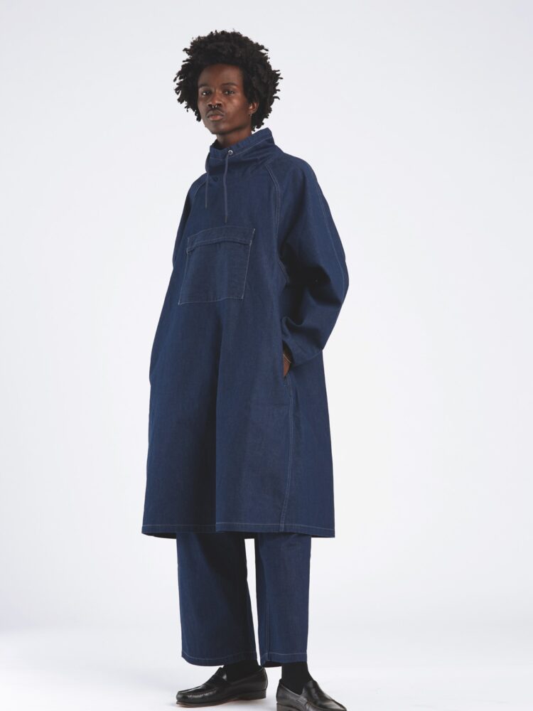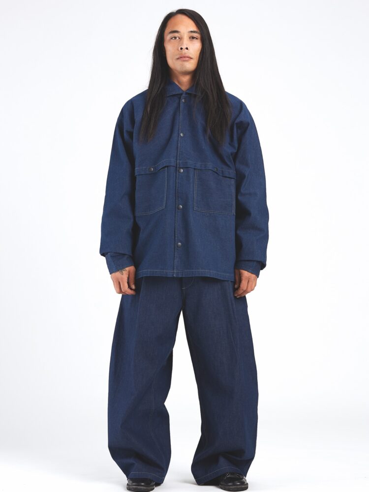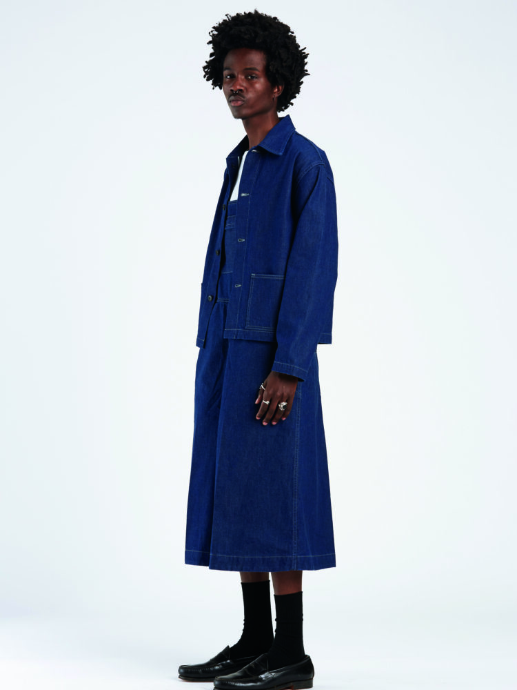 Ispirata all’abbigliamento sportivo e utility di oggi, questa nuova Denim Family si caratterizza per linee pulite e semplici, in grado di creare differenti silhouette. I bottom sono loose, i top morbidi e fluidi. Tutti i capi, realizzati in tessuto denim color indaco, sono super versatili, perfetti per essere mixati tra loro, indossati a strati o da soli. I pezzi must sono un Pleated Trouser croppato con gamba ampia, una salopette corta e ultra larga, un parka con tasca sul davanti e un mantello/tunica con colletto, oltre a due camicie in chambray di diversa lunghezza.