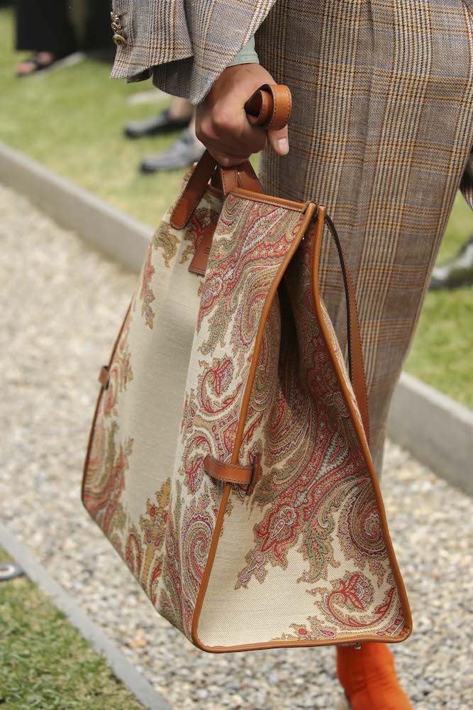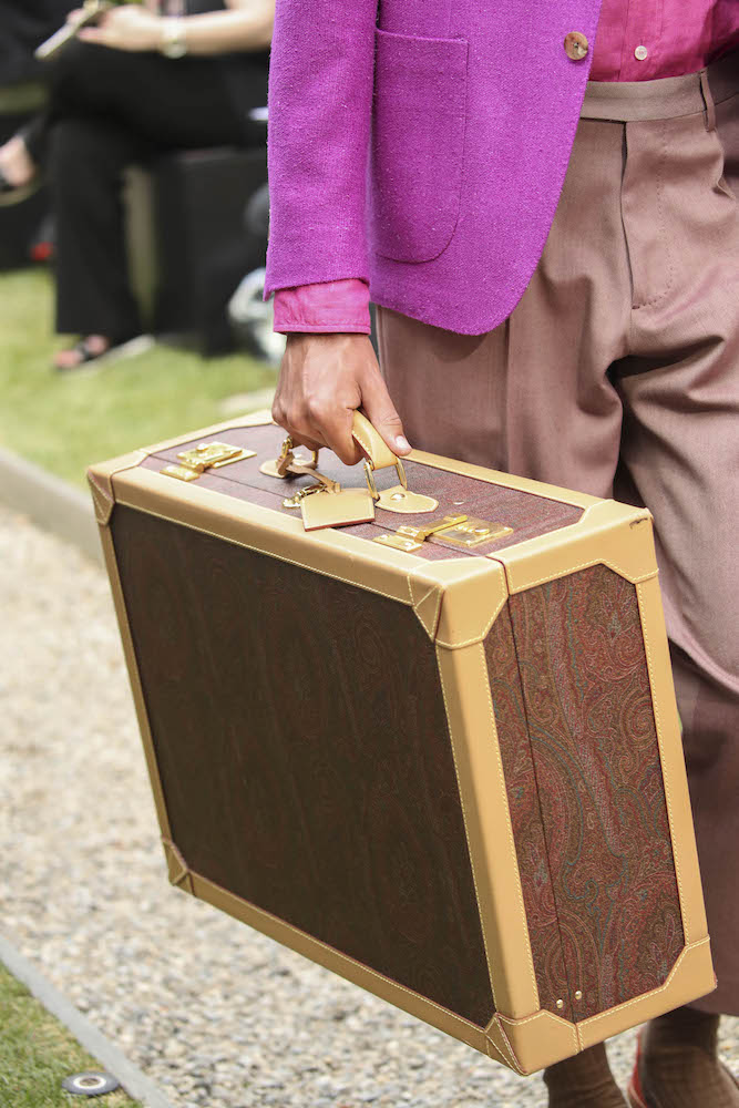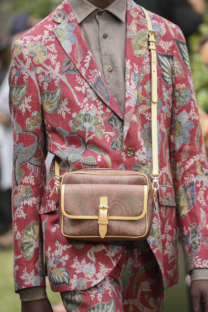 E siccome da sempre il viaggio è fonte d’ispirazione per la maison italiana, tra gli accessori non potevano mancare comode sacche pieghevoli e porta documenti da portare a tracolla. Sono stati presentati anche i nuovi occhiali da sole Etro X Carrera Collectors Edition, riedizione estiva dell’inconfondibile modello unisex a goccia degli anni Ottanta, Carrera Champion, in una palette di colori inediti – giallo limone, rosso fuoco, rosa candy, verde foresta, blu notte e nero.