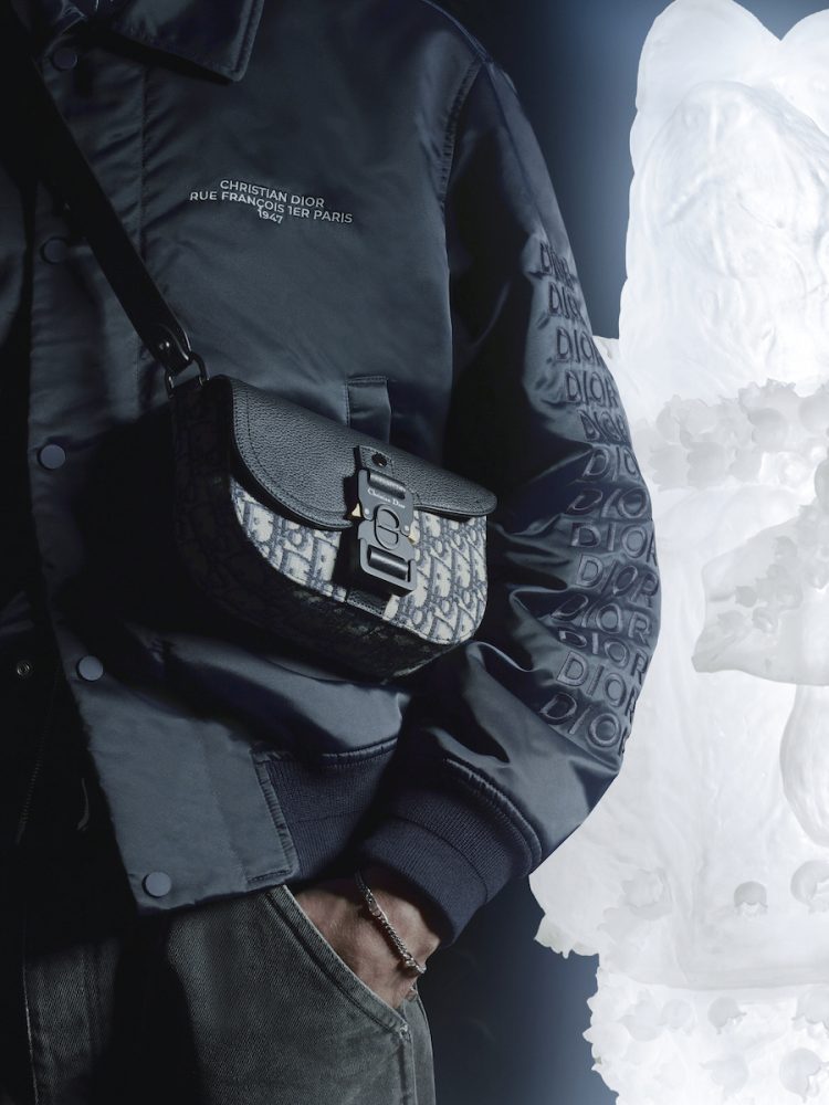 Questa pochette Saddle di Dior è realizzata in jacquard Dior Oblique beige e nero, con una pattina in pelle di vitello granulata nera e una fibbia in alluminio dall’allure sportiva. La tracolla è rimovibile e regolabile, per portare la borsa a mano, a spalla o a tracolla.