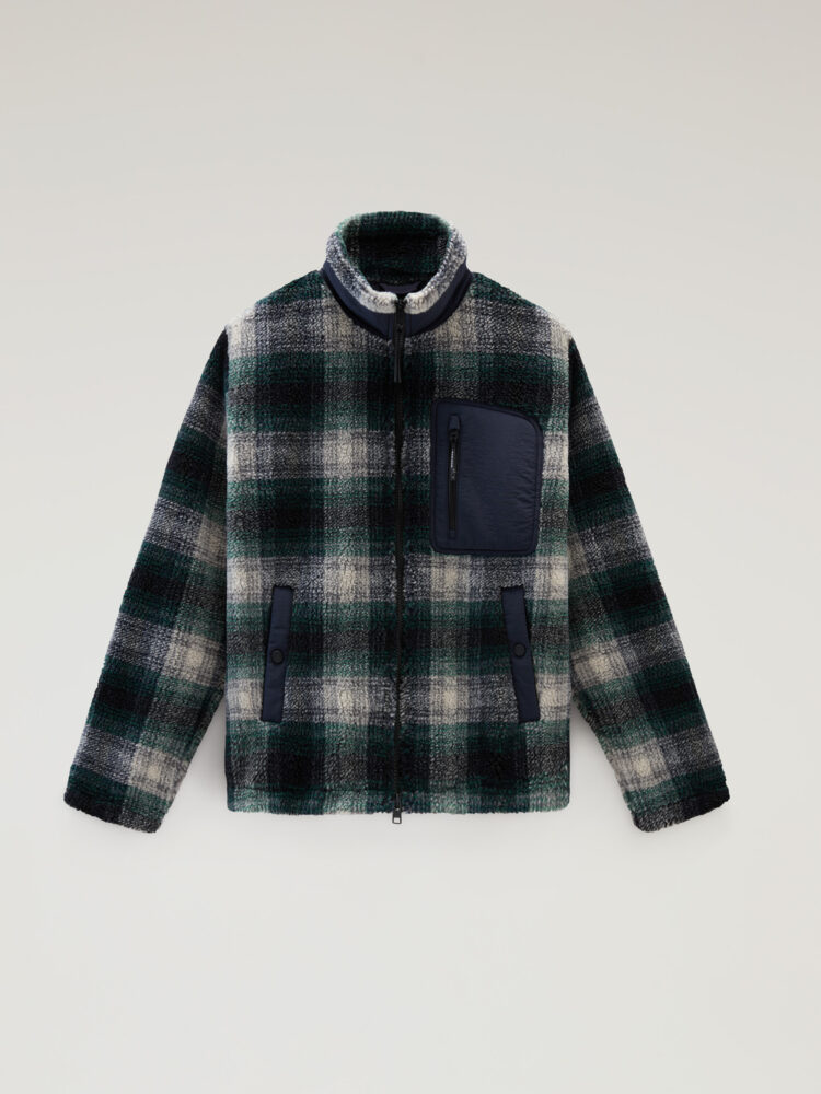 Stile e funzionalità sono la parola d’ordine per Woolrich che propone una giacca realizzata in sherpa di misto lana con un motivo a quadri d’archivio. I dettagli in nylon come il colletto, le toppe sui gomiti e la tasca con zip verticale sul petto le conferiscono un tocco moderno. Ha il collo alto, una chiusura con zip bidirezionale e due comode tasche a filetto con bottoni a pressione.