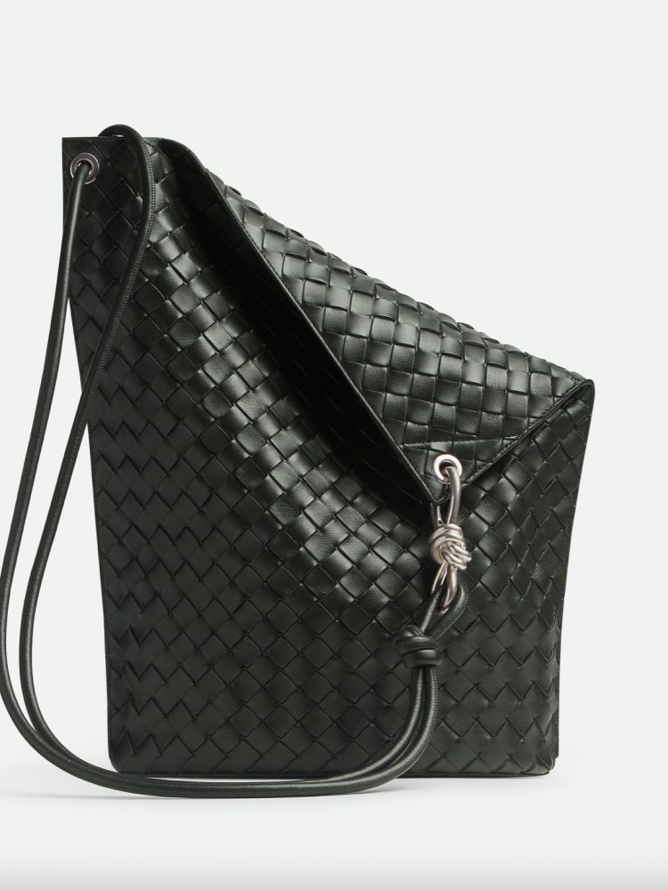 La borsa Knot Bucket di Bottega Veneta è realizzata in morbida pelle di vitello nell’emblematica lavorazione Intrecciato che contraddistingue le creazioni della maison. La tracolla è impreziosita da un nodo in metallo con finitura argento.