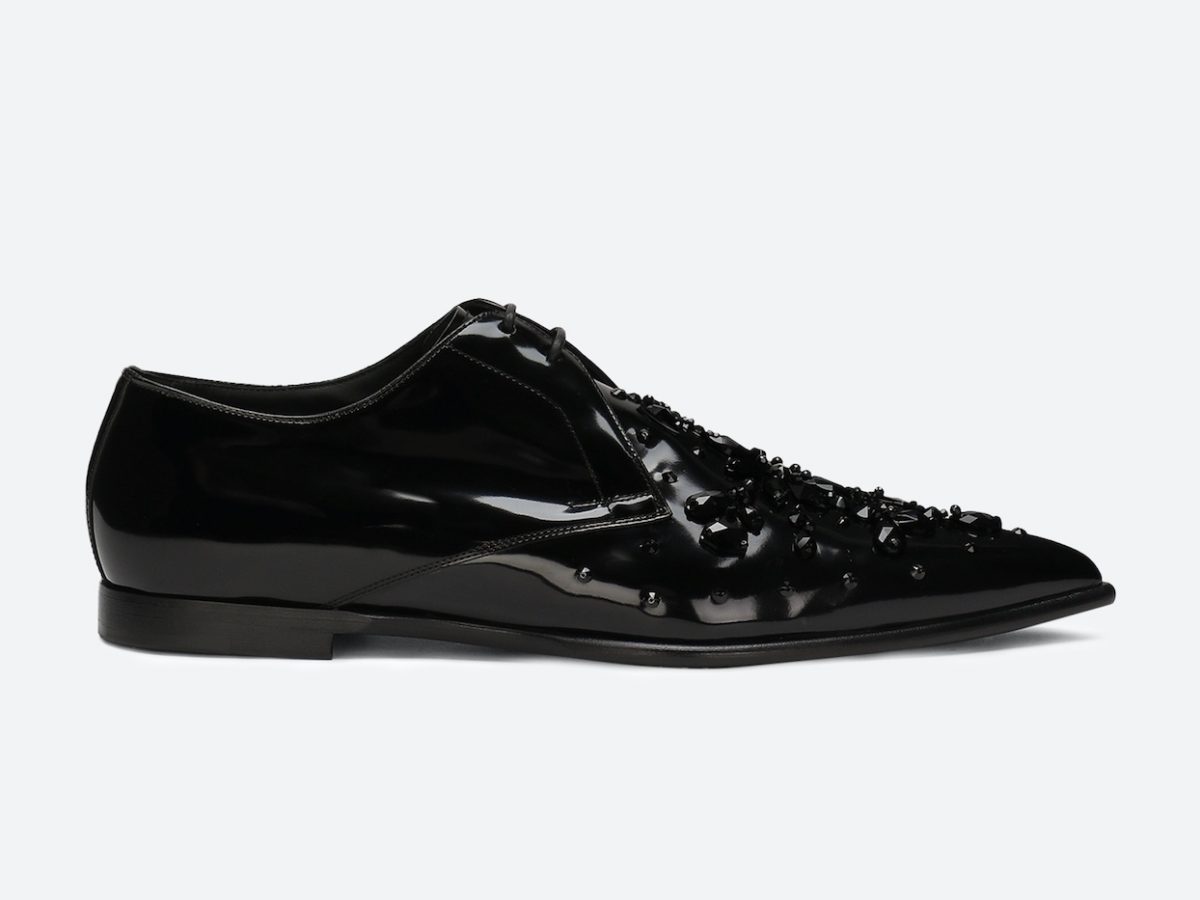 Chi ama lo stile delle grandi star della Golden Age di Hollywood, non potrà fare a meno di queste derby di Dolce&Gabbana, che uniscono un’eleganza senza tempo a uno sparkling mood a tema festa. Sono realizzate in pelle di vitello dall’effetto lucido, con pietre ricamate sulla tomaia.