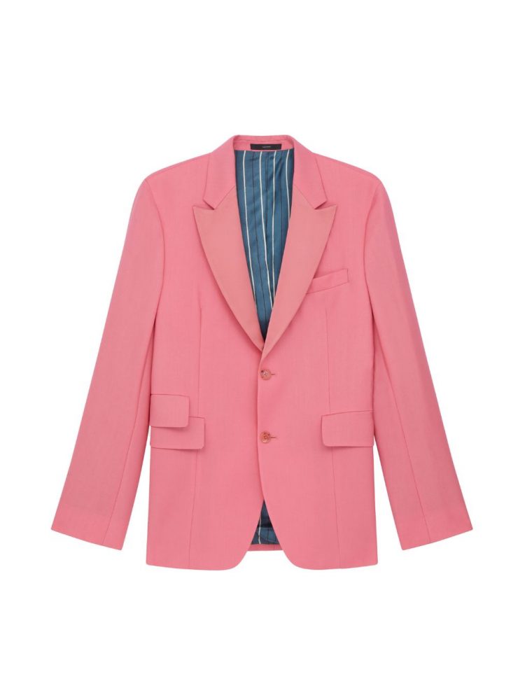 Una giacca sartoriale non può mancare nel guardaroba maschile. Per chi ama osare con i colori, Paul Smith propone questo blazer rosa pesca con fodera in seta rigata, perfetta da indossare sia in completo con pantaloni coordinati, sia con un jeans over e sneaker.