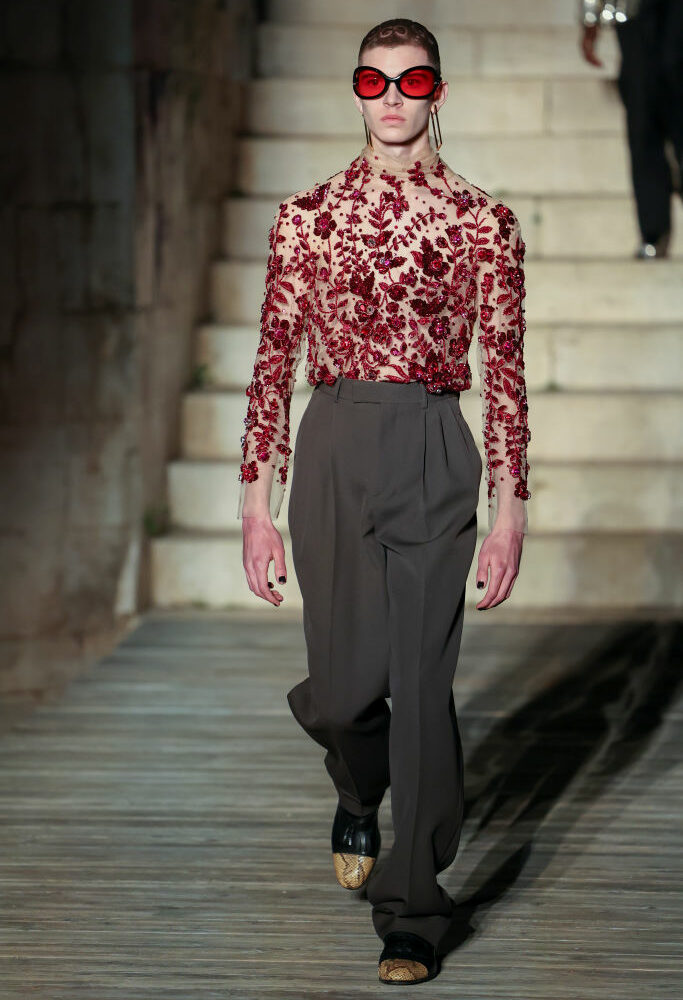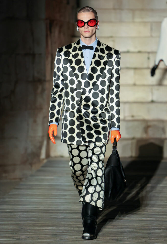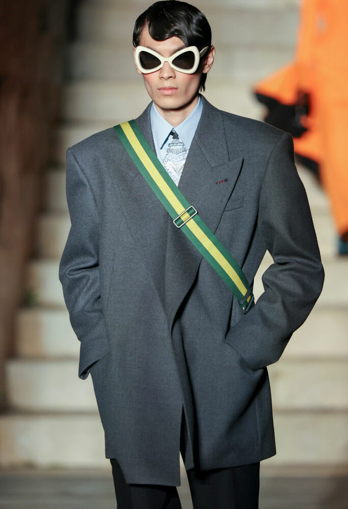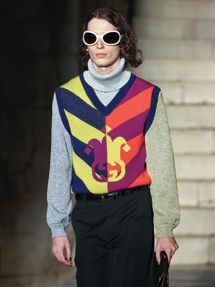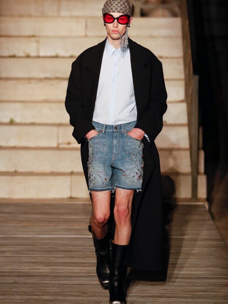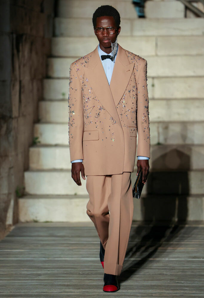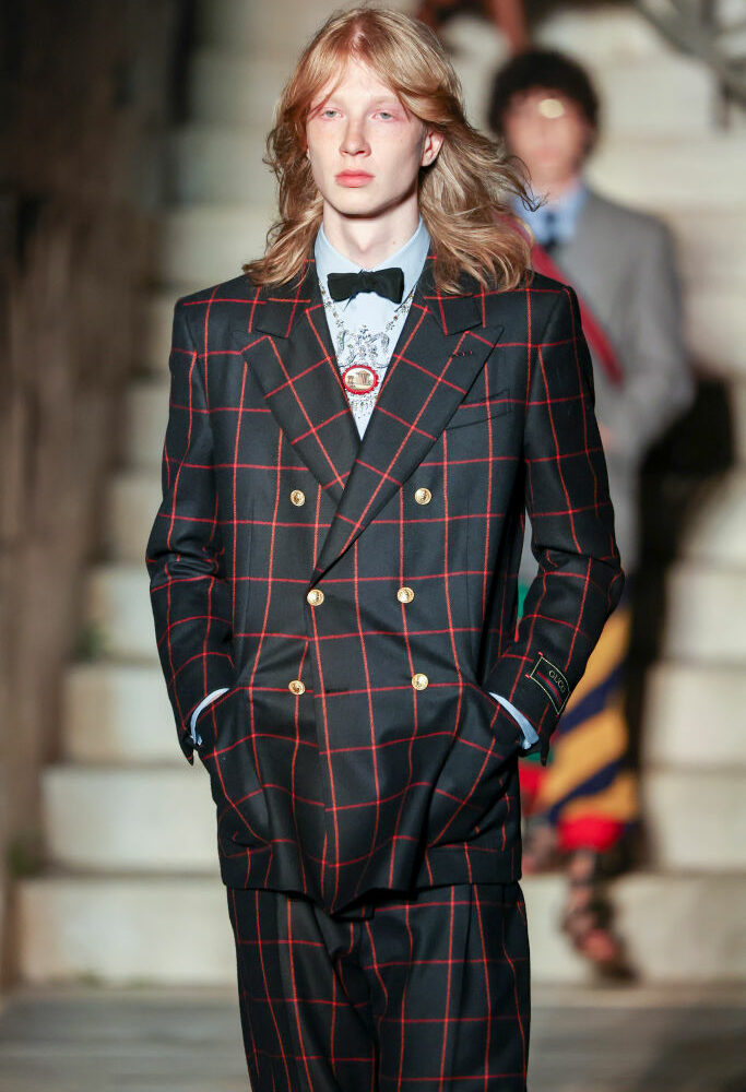 La collezione che prende vita dall’estetica di Alessandro Michele si fonde in una narrazione che fonde stili e allegorie, epoche e ispirazioni in cui la libertà è indiscussa protagonista. Gli abiti stupiscono, affascinano, si costruiscono in una tensione e vitalità che attinge dal passato per esprimere la propria visione del presente. I vestiti sono uno strumento, un mezzo che unisce vita e moda, oggetti e ricordi, galassie e costellazioni. Un flusso di coscienza dello stilista che orchestra, con il suo genius loci a cui ormai ci ha abituati, un’ambientazione straordinaria.