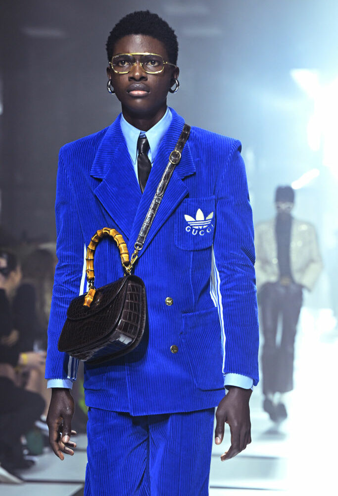 Alessandro Michele si affianca ad Adidas ibridando i classici della sartoria con le tre iconiche righe dell’azienda tedesca in una collezione prevalentemente maschile, ma che può essere portata da tutti