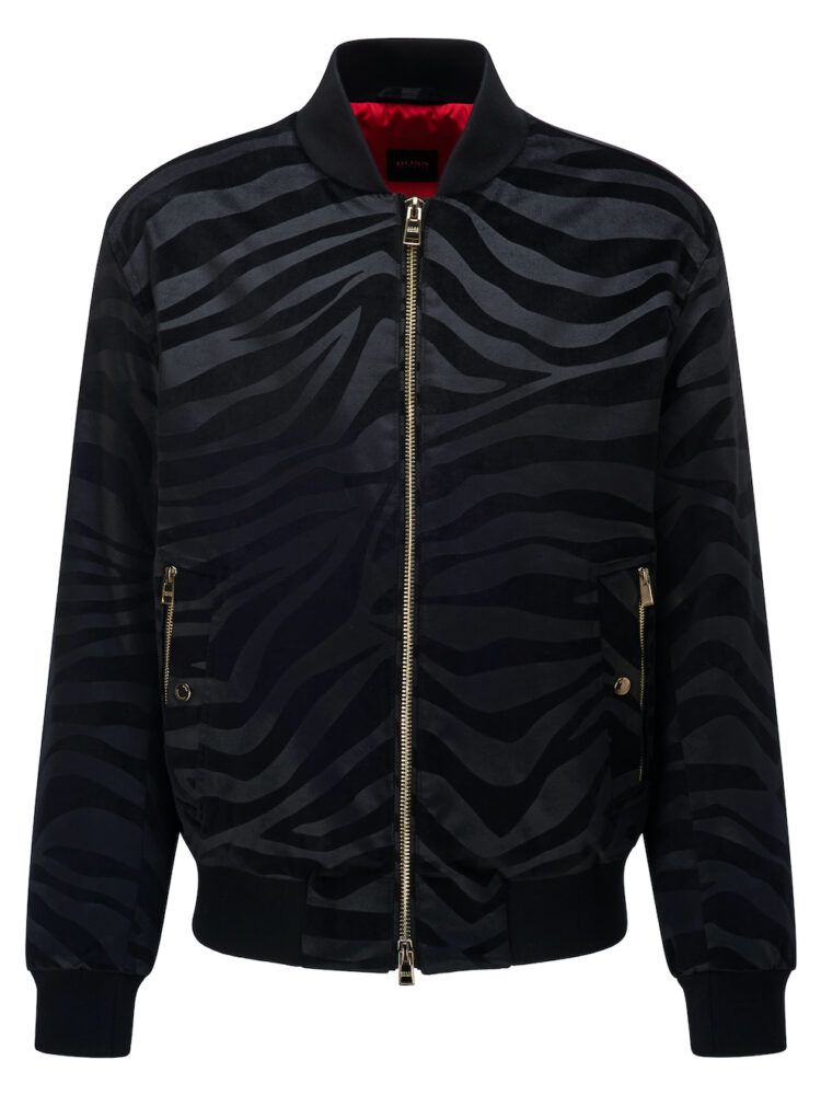 BOSS – Per celebrare l’anno lunare della tigre, il brand presenta una capsule in edizione limitata e un’illustrazione che rappresenta la forza e coraggio della tigre. La collezione comprende capi sartoriali e capi sportswear, nelle tonalità del rosso, viola, nero e beige, compreso questo bomber con una fantasia tigrata ton sur ton che non passa inosservato.