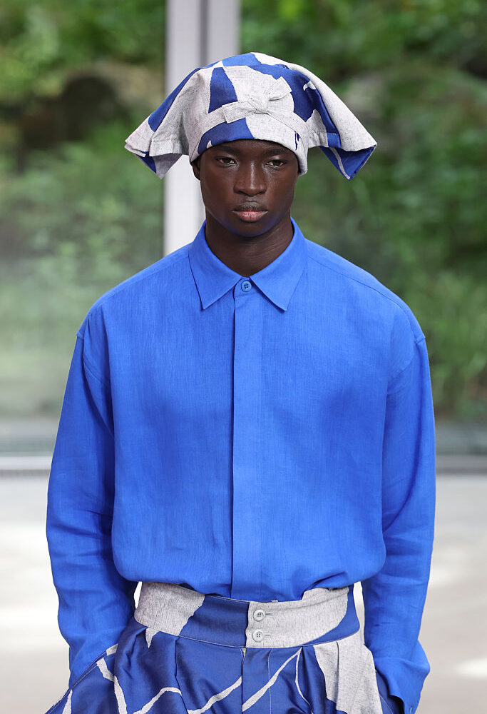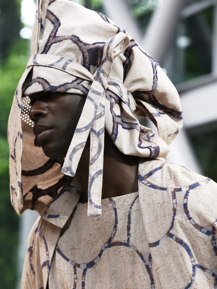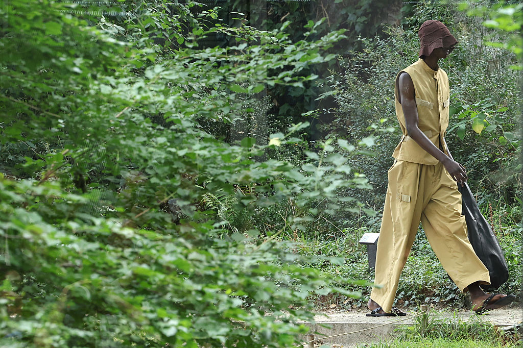 Non si tratta di una semplice ispirazione estetica, ma di una vera e propria traduzione tra linguaggi e discipline diverse: la ceramica diventa superficie da indossare, la sartoria un mezzo per interpretare la sensibilità tattile dell’arte giapponese. Il set scelto — la Fondation Cartier pour l’art contemporain a Parigi, capolavoro di Jean Nouvel — è un luogo sospeso: attualmente chiuso in attesa di trasferimento, è diventato lo sfondo ideale per una collezione che esplora l’equilibrio tra pieni e vuoti, superfici e volumi.