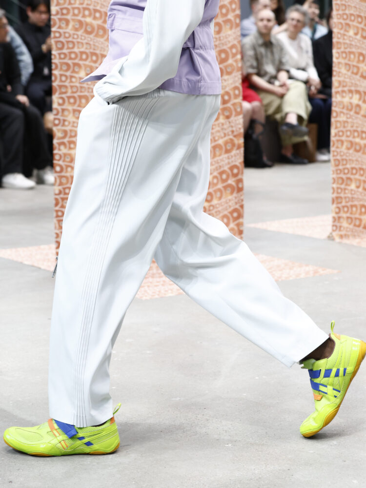 Chiude il cerchio ISSEY MIYAKE FOOT, il nuovo progetto congiunto tra MIYAKE DESIGN STUDIO e ASICS SportStyle. Il primo modello, HYPER TAPING, rilegge le iconiche ASICS stripes come fasce dinamiche ispirate al bendaggio sportivo. Il risultato? Una scarpa tecnica, elegante e innovativa, pensata per chi vive il corpo come primo strumento creativo. È la sintesi perfetta tra innovazione e heritage, tra la visione di Miyake e l’expertise sportiva di ASICS. Un accessorio che diventa estensione naturale del movimento.