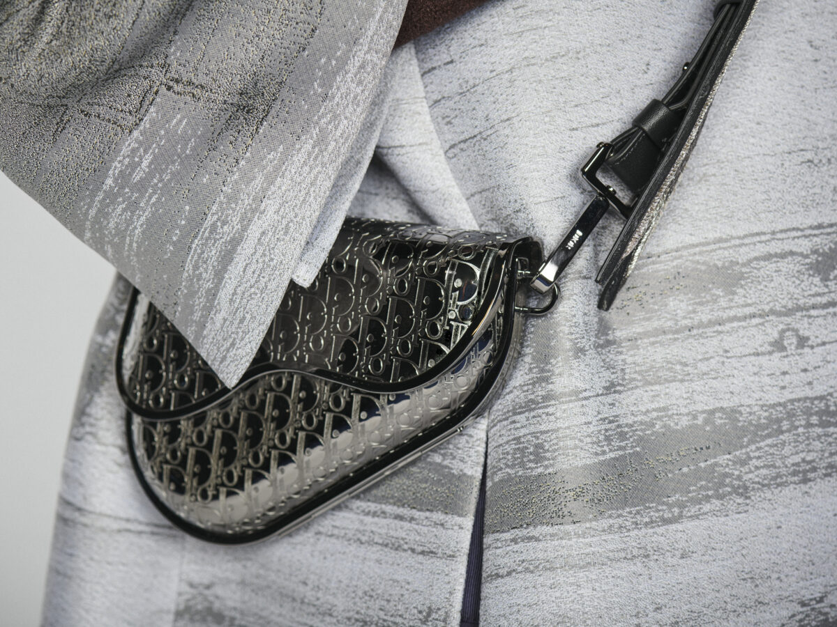 Senza nessuna esitazione, Kim Jones risponde di aver lavorato a 15 collezioni diverse da quando è arrivato in Dior tre anni fa. Una nomina un po’ a sorpresa, arrivata nella primavera del 2018, in un momento in cui il posto di direttore artistico della moda maschile non era vacante e le indiscrezioni lo annunciavano un giorno da Burberry, l’indomani da Versace, dopo sette anni di lavoro e di successi a capo della moda uomo di Louis Vuitton. Dall’oggi al domani, Kim Jones assume così il nuovo incarico di direttore artistico della moda maschile della celebre griffe al numero 30 di avenue Montaigne. In un battibaleno, gira tutti gli archivi, coglie l’essenza della maison e recupera alcuni codici originali della sua storia sartoriale, consapevole che Christian Dior non ha mai disegnato modelli da uomo. In particolare, mette gli occhi sul “taglio obliquo”, nato dalla collezione a/i 1950-1951 del fondatore, per proporre una nuova versione di abito da uomo con ampio incrocio mantenuto da un unico bottone. Questo aveva peraltro dato vita, nel 1967, a un’interpretazione grafica in tela con logo a cura di Marc Bohan, sfruttata anche per drappeggiare calzature e accessori; tra questi, una versione maschile della Saddle creata all’epoca in cui John Galliano dirigeva la moda femminile della maison. «Mi chiedo sempre cosa penserebbe, o cosa creerebbe Monsieur Dior se oggi fosse al mio posto. Mi preme anche tenere sempre presente quanto di meglio i miei predecessori sono riusciti a creare», spiega questo designer, la cui creatività non potrà mai essere tacciata di egocentrismo. «Immagino le collezioni in funzione della Maison Dior e non dei miei gusti personali», aggiunge colui che, poco tempo fa, ha dato vita per qualche stagione a un marchio con il proprio nome, al termine degli studi di moda maschile presso il Central Saint Martins College of Art and Design.