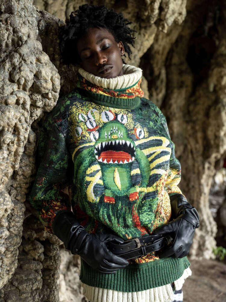 Se c’è un progetto che sintetizza lo spirito contemporaneo è OUT RAGE di Steven Chevallier. Un lavoro che attraversa attivismo, estetica queer e ricerca visiva. Stampe a contrasto, silhouette unisex e accessori decisi diventano strumenti per raccontare tensioni sociali e identità fluide. Non è styling, è presa di posizione. Non a caso, è lui a vincere il premio legato a Ray-Ban, brand che più di altri lavora sul concetto di individualità culturale.