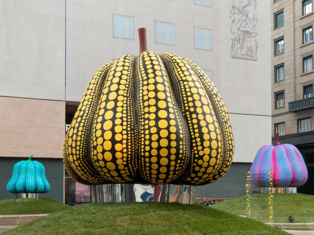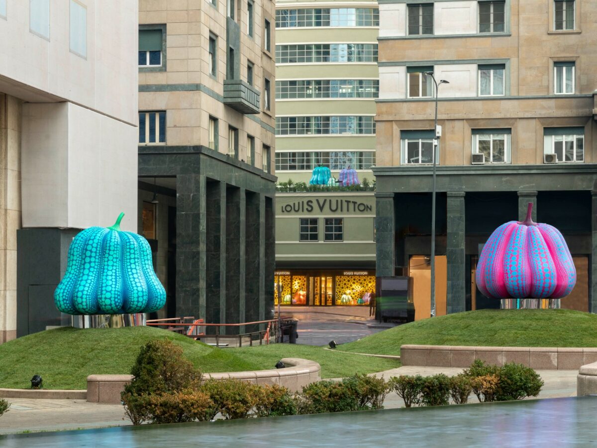 Le zucche e i pois si ispirano alle opere d’arte più famose dell’artista giapponese Yayoi Kusama, e inaugurano simbolicamente la nuova sede della Maison francese, mentre sono in corso i lavori della sede storica di Milano, e ‘accompagnano’ il lancio mondiale della collezione in collaborazione con l’artista: Louis Vuitton x Yayoi Kusama.