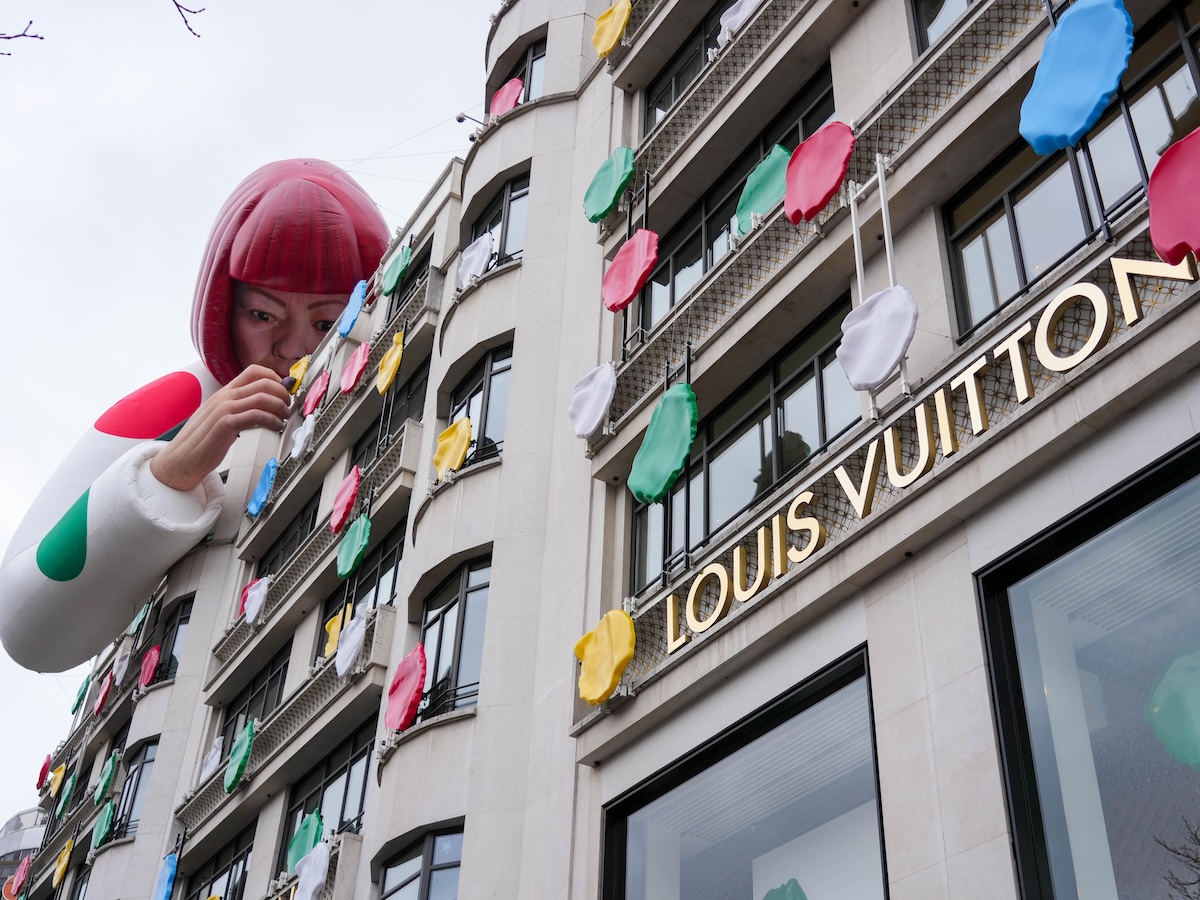 Nel 2023, Nicolas Ghesquière ha alzato il tiro: i pois sono diventati tridimensionali e metallici, le zucche e i fiori psichedelici hanno affiancato le macchie, e a Parigi una figura animatronica a grandezza naturale dell’artista (94 anni, sedia a rotelle, kimono rosso) ha dipinto in diretta la vetrina della boutique di Avenue Montaigne. Ne hanno parlato tutti i media del mondo, ben oltre la moda.