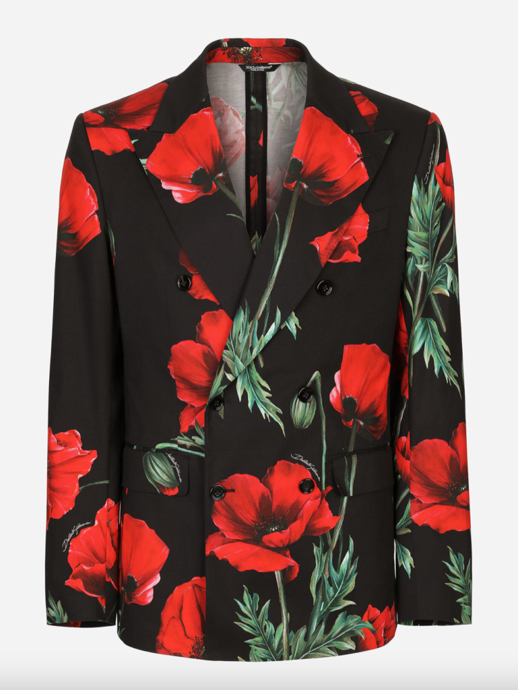 Doppiopetto e con revers a lancia, questa giacca di Dolce&Gabbana è sfoderata e realizzata in cotone stretch per assecondare ogni movimento. Un capo dall’anima sartoriale, decorato dalla stampa Papaveri, inno alla gioia di vivere e alla convivialità.