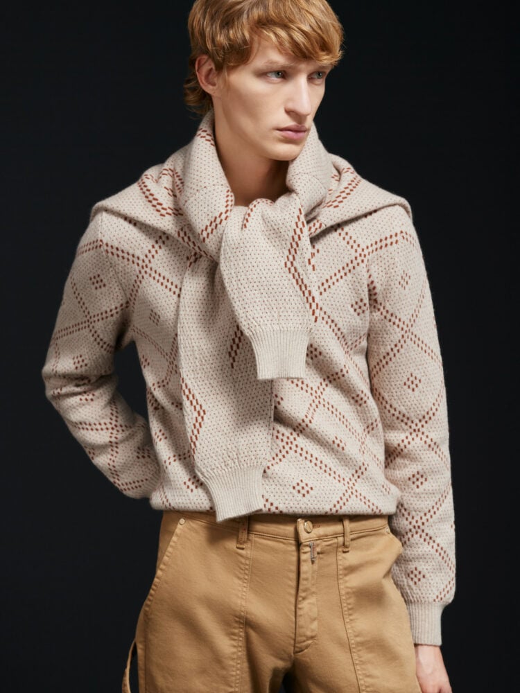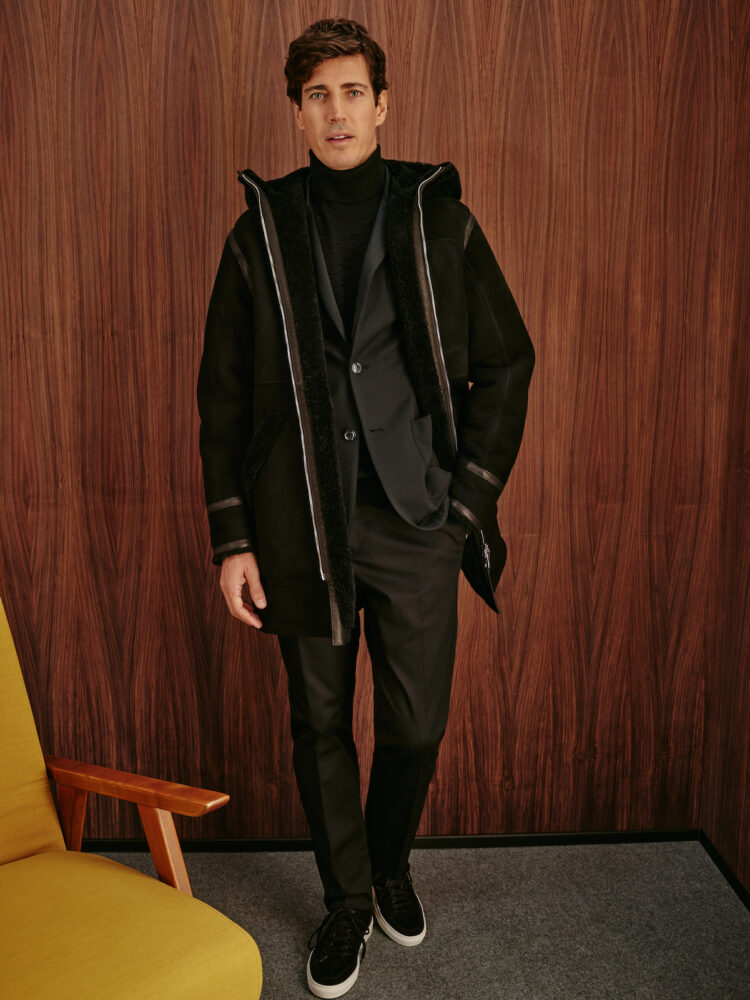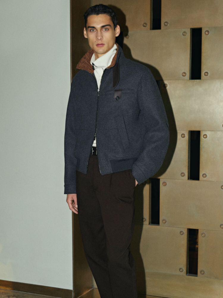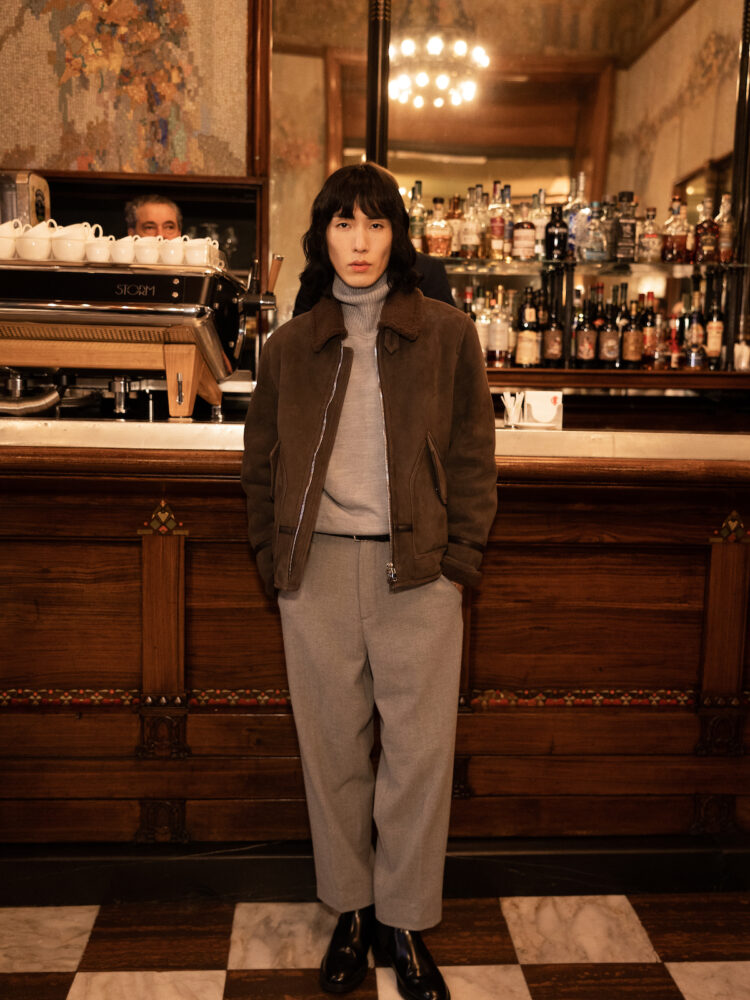 Per il prossimo inverno, il direttore creativo del brand omonimo Brett Johnson reinterpreta gli archetipi menswear per rispondere alle esigenze della contemporaneità. Il linguaggio sartoriale ricerca il massimo comfort: i volumi sono più arrotondati, e le forme destrutturate incontrano l’eccellenza manifatturiera e la preziosità dei materiali. Ecco piumini in pelle con dettagli in maglia, poi caban e aviator in shearling, ulteriomente impreziositi da bordure in nappa, e anche un bomber reversibile che abbina il pure cashmere ad un tessuto tecnico lana-seta.
