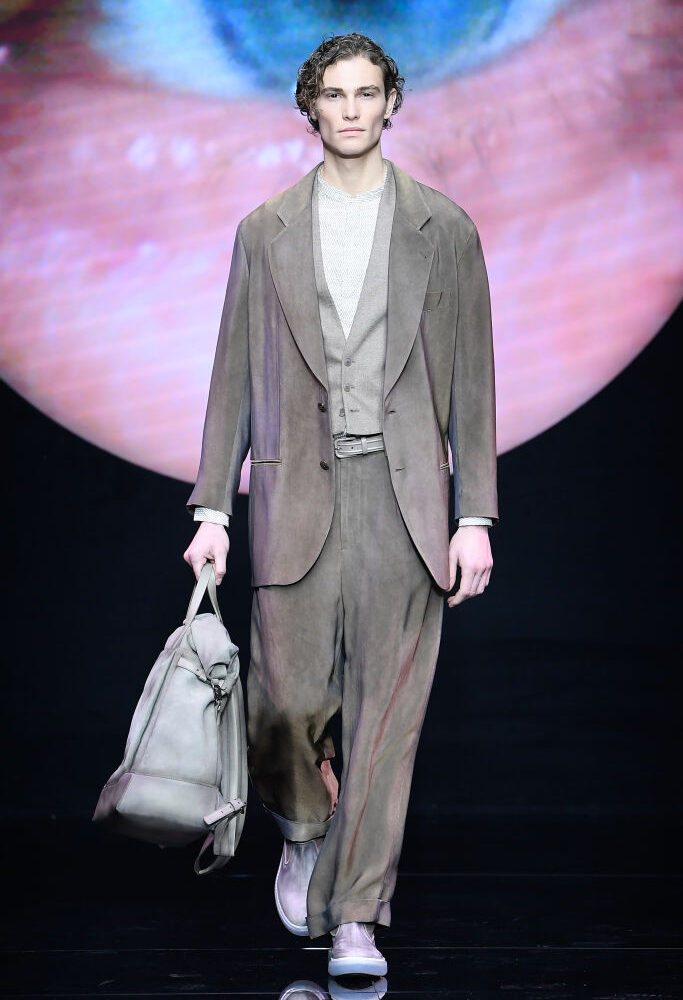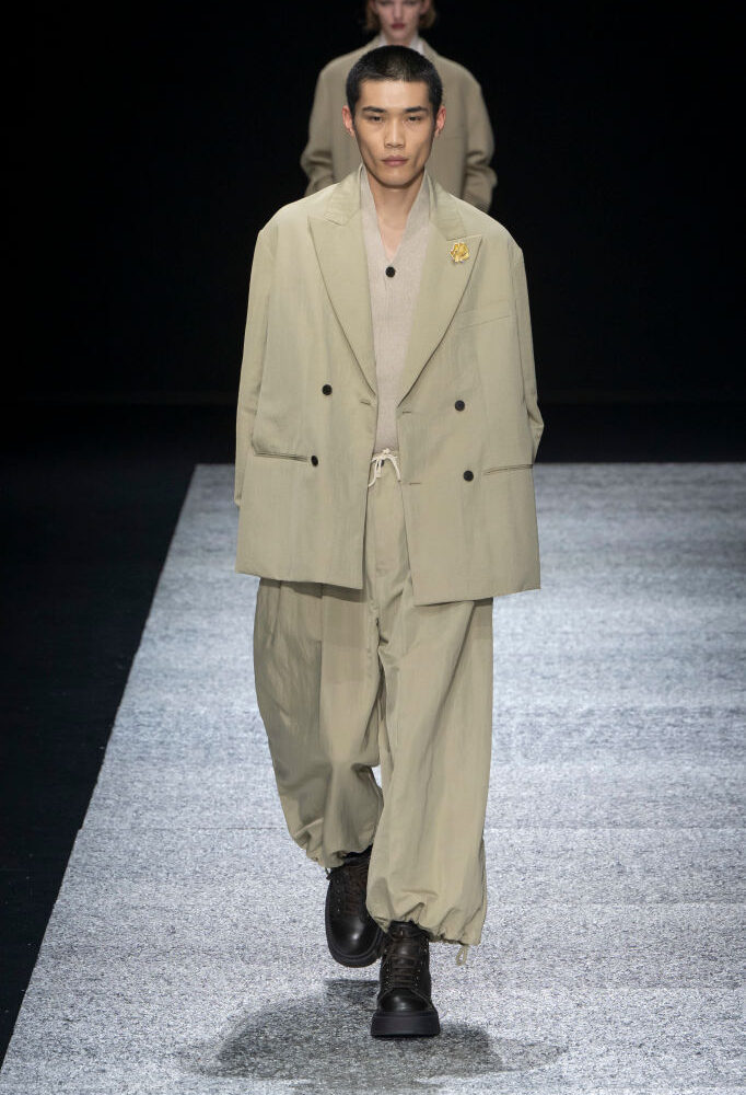 Giorgio e Emporio Armani scelgono entrambi gli opposti del Mocha Mousse, ossia il beige e il marrone, così da accontentare i gusti di tutti gli uomini.