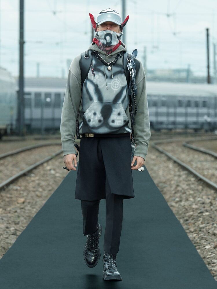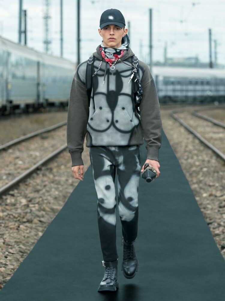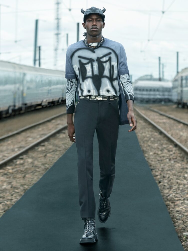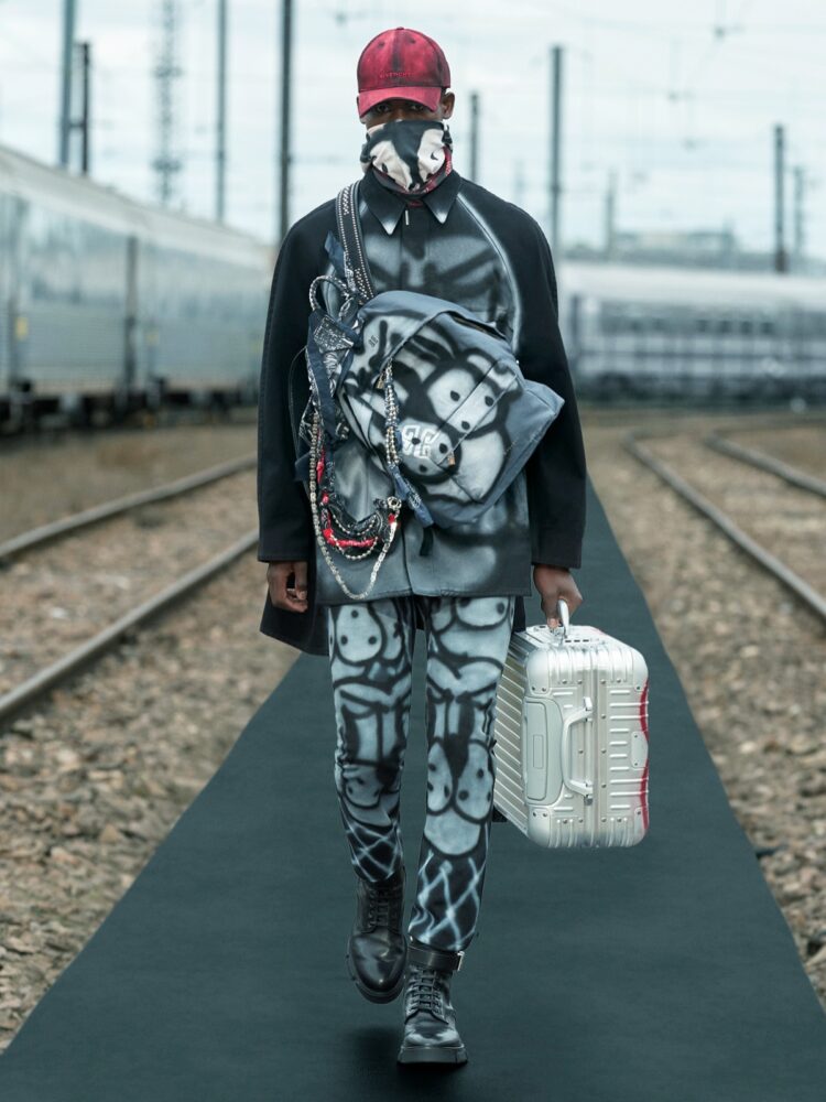Uno spirito di unione tra mondi – con una passerella ambientata in uno scalo ferroviario parigino – diventa una metafora ideale per la prima collaborazione artistica del direttore creativo per Givenchy: un dialogo giocoso e contemporaneo con l’artista Chito, basato in Messico e nato a Seattle, per abiti, accessori e la valigeria RIMOWA.