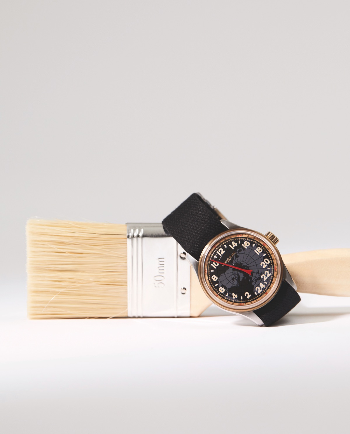 MONTBLANC – Il design si rifà agli esemplari da tasca Minerva degli anni Venti e Trenta del secolo scorso, il mood guarda all’esplorazione della montagna e della natura. Il 1858 Automatic 24H si distingue per la presenza di un’unica lancetta centrale, che visualizza ore e minuti sulla scala delle 24 ore. Ma funziona anche come una bussola, che misura i gradi posti sotto il réhaut. La cassa (42 mm) in acciaio ha la lunetta in bronzo, il quadrante è decorato con la mappa dell’emisfero Nord, con i continenti luminescenti. A 2.970 euro.