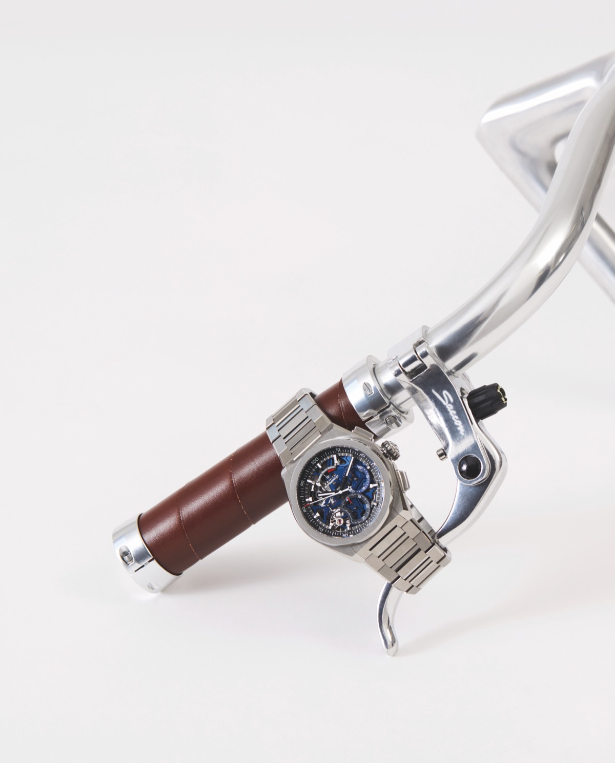 ZENITH – È l’erede del primo movimento cronografico integrato ad alta frequenza, datato 1969 e capace di misurare il 10° di secondo. Ma il Defy El Primero 21, uscito nel 2017, ha alzato l’asticella della precisione e ha raggiunto il 100° di se- condo. Oggi come ieri certificato cronometro da Time Lab, ritorna ora con cassa (44 mm) e bracciale in titanio spazzolato, e quadrante aper- to sui componenti blu. Al centro, la lancetta dei secondi crono ruota sempre a velocità impressionante.