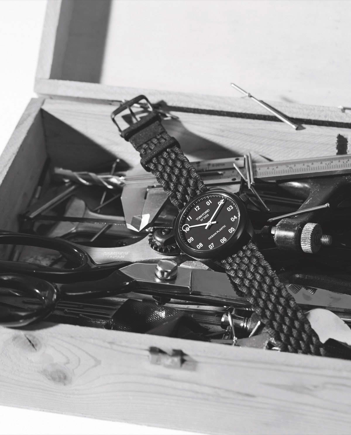 TOM FORD – È realizzato lavorando la plastica raccolta negli oceani attraverso un procedimento sostenibile a energia solare brevettato dalla Swiss University of Applied Science. Dal quadrante al cinturino (intrecciato a mano per un effetto velluto), fino al packaging. Per ogni modello Tom Ford Ocean Plastic Timepiece si riciclano 35 bottiglie di plastica. Per produrre 100 orologi si “consumano” insomma più di 220 chili di plastica recuperata dal mare. A 925 euro.