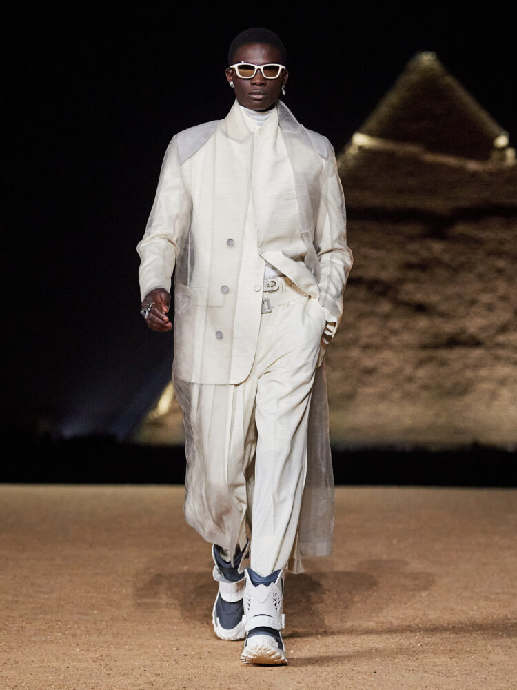 Una sera d’autunno a Giza, al tramonto. Kim Jones presenta la collezione autunno 2023 ai piedi delle piramidi, uno show di grande suggestione estetica e creativa. Qui il video integrale della sfilata