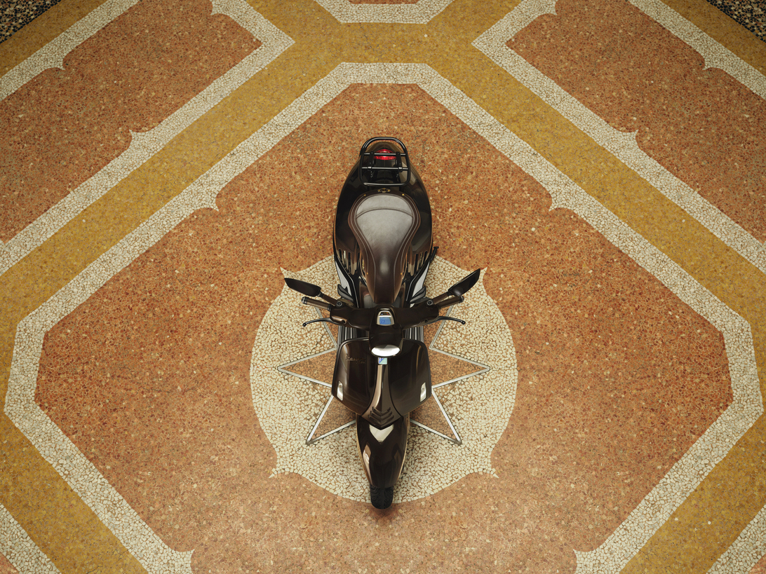 La nuova Vespa 946 Horse nasce dall’incontro tra libertà di movimento e raffinatezza assoluta. Il colore baio – una gradazione di marrone profondo e luminoso – avvolge la scocca in acciaio, esaltata da un sapiente gioco di superfici opache e lucide che cattura la luce con eleganza naturale. I dettagli dorati emergono con discrezione, come il monogramma V impresso al centro di un ferro di cavallo sotto la sella: un segno grafico che diventa simbolo, sigillo di un’eccellenza artigianale reinterpretata con modernità.