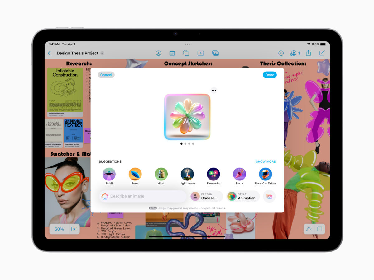 E, poi, c’è la Magic Keyboard, progettata proprio per iPad Air, con un trackpad più ampio, una fila di 14 tasti funzione e una solida cerniera in alluminio con connettore USB-C per una ricarica più comoda. Il tutto senza necessità di connessione Bluetooth, grazie allo Smart Connector che garantisce un’integrazione immediata e alimentazione diretta dal dispositivo. La novità è che questo tablet è ancora più potente e intuitivo grazie a iPadOS 18 e agli strumenti di AI avanzati che semplificano le attività quotidiane. Qualche esempio? Funzionalità come Ripulisci nell’app Foto consentono di eliminare elementi indesiderati dalle immagini, mentre Image Playground e Genmoji permettono di esprimersi in modo creativo. Siri ora è più naturale e intelligente, capisce meglio le richieste e offre integrazione diretta con ChatGPT, permettendo di sfruttarne le capacità senza bisogno di un’app esterna. Inoltre, le nuove funzioni di Note matematiche nella Calcolatrice trasformano i calcoli in un’esperienza interattiva con Apple Pencil, e la trascrizione audio in tempo reale rende le lezioni e le riunioni più facili da consultare.