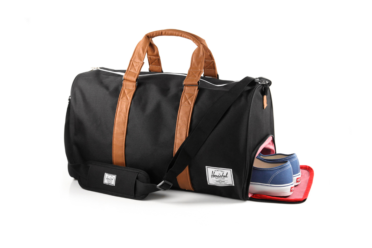 Sono totalmente waterproof anche il borsone Hally Hansen, in nylon trapaulin utilizzato per i teloni cerati che ricoprono camion e treni, e la Base Camp duffle bag di The North Face, in nylon laminato con fasce in poliestere, doppie cuciture, blocco zip e cinghie per la messa in spalla. Per le scarpe non c’è problema. Herschel Supply cuce all’interno della sacca in canvas una shoe pocket con retina traspirante che tiene le sneaker separate dai vestiti. Nasce invece dalla collaborazione con Slam Jam la Adams duffle bag di Carhartt WIP, nei due colori, bianco e nero, con finiture tono su tono. Una sacca con tape reflective ripreso dai capi workwear in tessuto idrorepellente, bande con scritte catarifrangente e protezioni imbottite per le spalle.