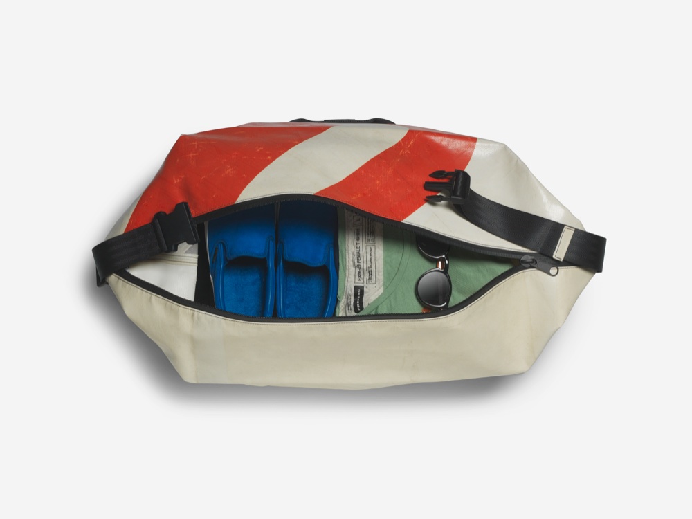 Sul treno o in aereo. Attraversando metropoli incandescenti con i piedi su uno skate o mari calmi a bordo di una barca a vela. Il bagaglio è leggero, essenziale, comodo da indossare. Il compagno di viaggio di chi si sposta avventurandosi in itinerari più o meno conosciuti. Nascono così backpack e duffle bag ricavati dai teloni di camion riciclati, robusti, perfetti come bagaglio a mano anche in aereo. Come quello di Freitag, si chiama F512, ha spallacci imbottiti, due manici pe ril trasporto a mano, scomparto interno con cerniara chiusura waterproof con cerniera e cinghia di sicurezza per proteggere il contenuto.