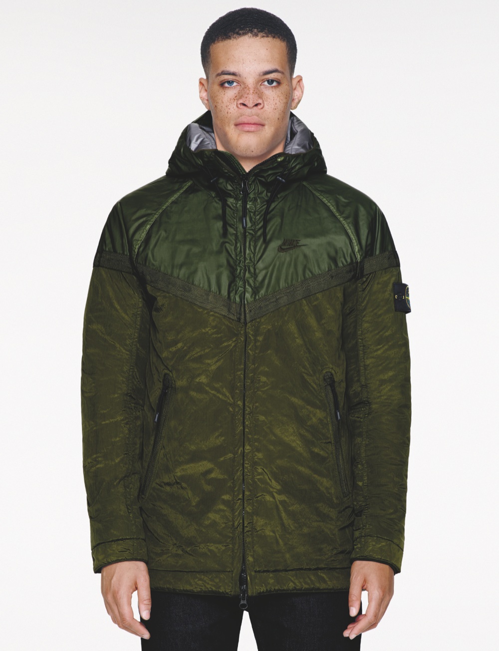 Ma c’è di più. Nike nel 2016, anno importante per il mondo dello sport, celebrerà il suo capo icona, la Windrunner jacket, un modello continuativo reso performante grazie alle nuove tecnologie e alle diverse collaborazioni tra designer e atleti dal mondo running a quello della break dance. Così a partire da dicembre 2015 sarà disponibile la collezione disegnata in collaborazione con Stone Island in cui concentra tutto il suo savoir fare nell’innovazione tessile. Lo chevron e il cappuccio della Windrunner NikeLab x Stone Island sono caratterizzati da mussola gommata impermeabile e antivento, formata da mussola di cotone leggera intrecciata ad una pellicola di poliuretano opaco. Il Nylon Metal, un tessuto brevettato da Stone Island caratterizzato da una lucentezza metallica, contraddistingue il busto della giacca rivestito in PrimaLoft. Pur essendo monocromatico, (la giacca è proposta in sei colori: nero, grigio, blu, bluette, verde militare e rosso) l’esterno della giacca ricorda il classico color block della Nike Windrunner ottenuto attraverso il processo di tintura dei capi di Stone Island. La collaborazione prevede anche la sneaker-hiker ibrida Nike Koth Ultra Mid SI, ispirata alla Air Mowabb e realizzata in materiali impermeabili.
